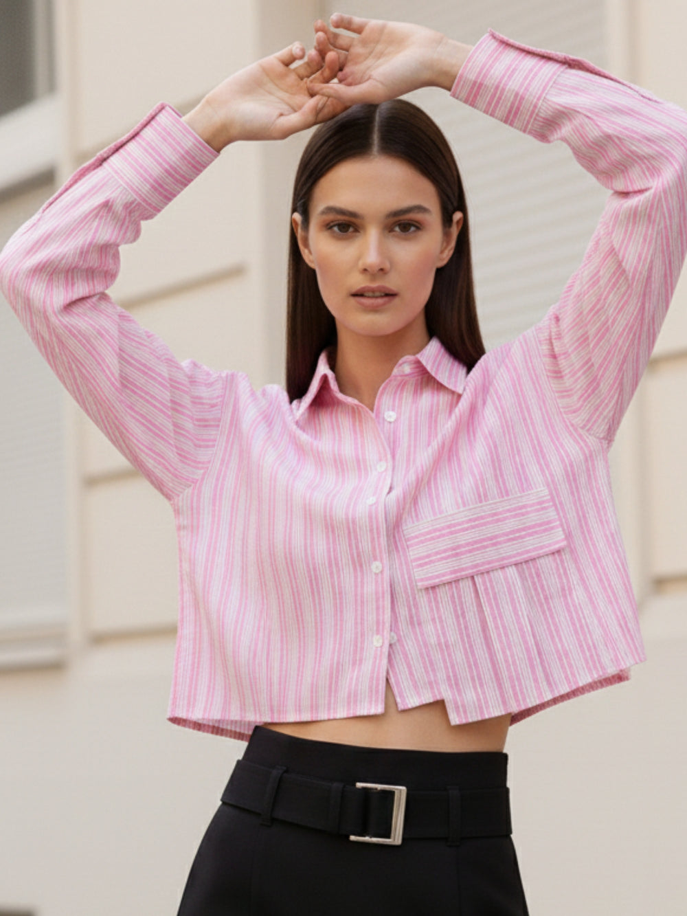 The Pink Cropped Boxy Shirt With Large Pocket Detail is perfect for those on-the-go days that need a little style boost. Pink adds that spark, while the casual wear shape keeps things minimal and versatile. A cropped fit that moves with you.