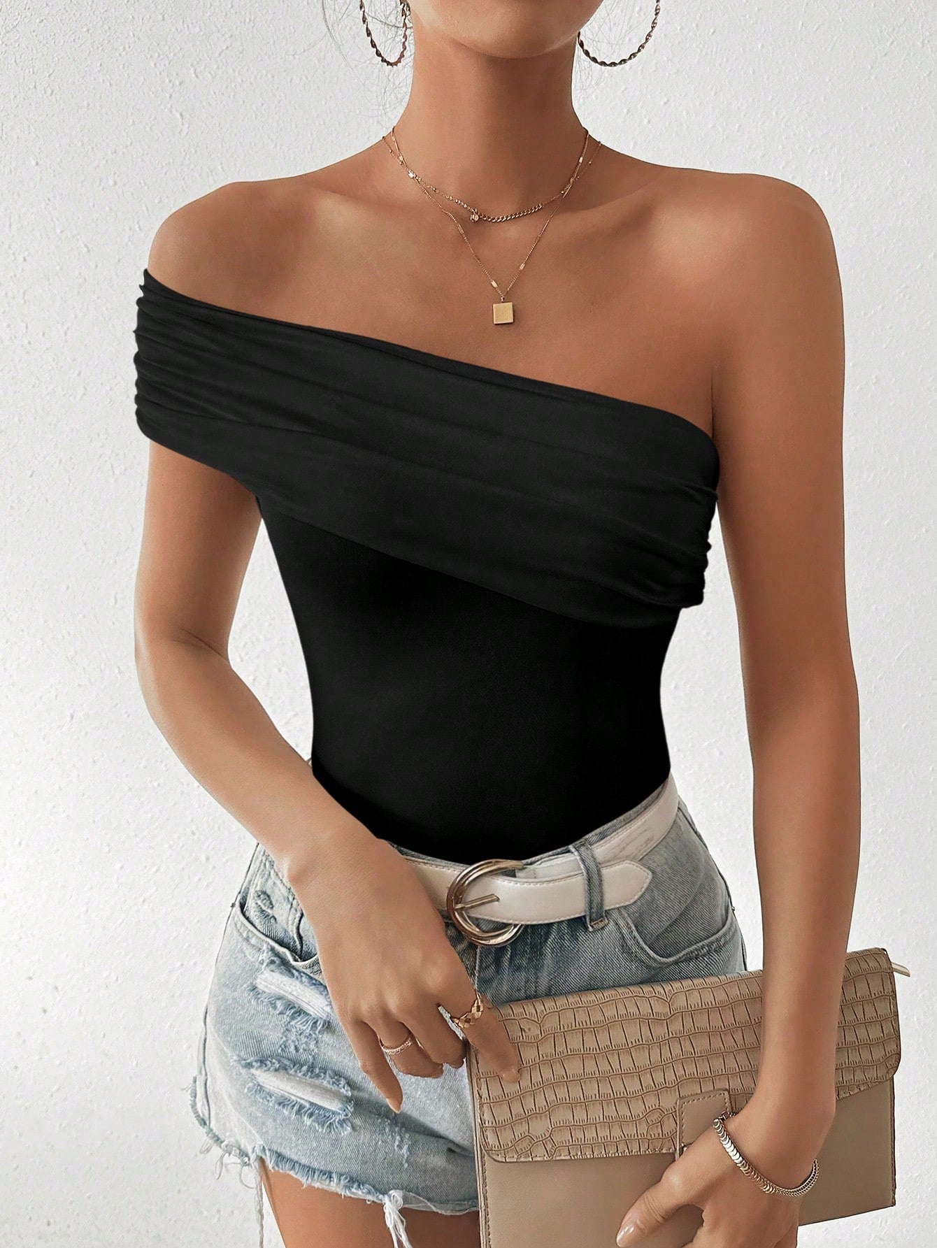 Black One Shoulder Fitted Top