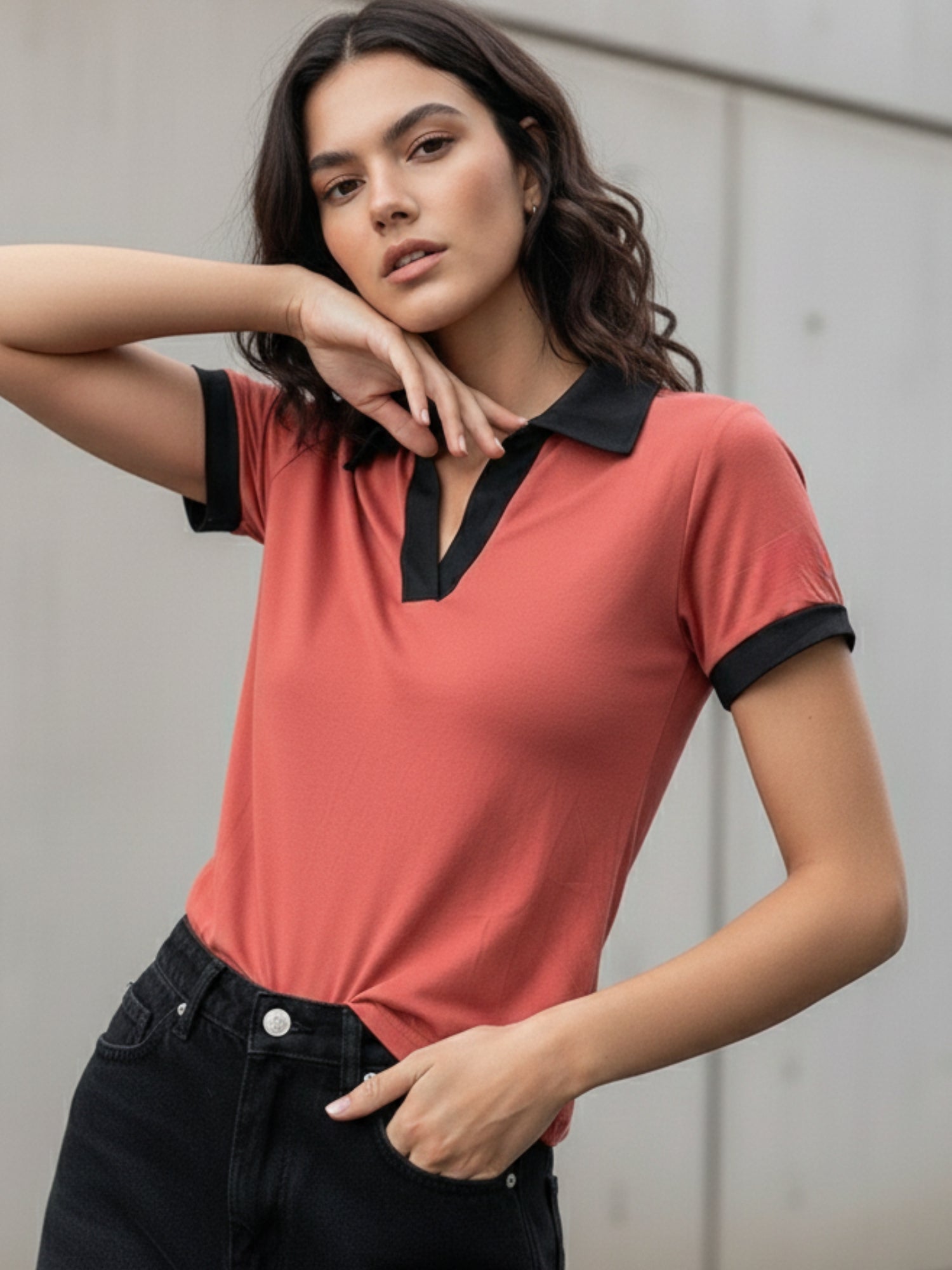 Elevate your daily look with this chic brown knit top featuring stylish contrast binding. Perfect for casual outings or a weekend brunch, it pairs beautifully with high-waisted denim for a refined yet relaxed aesthetic.