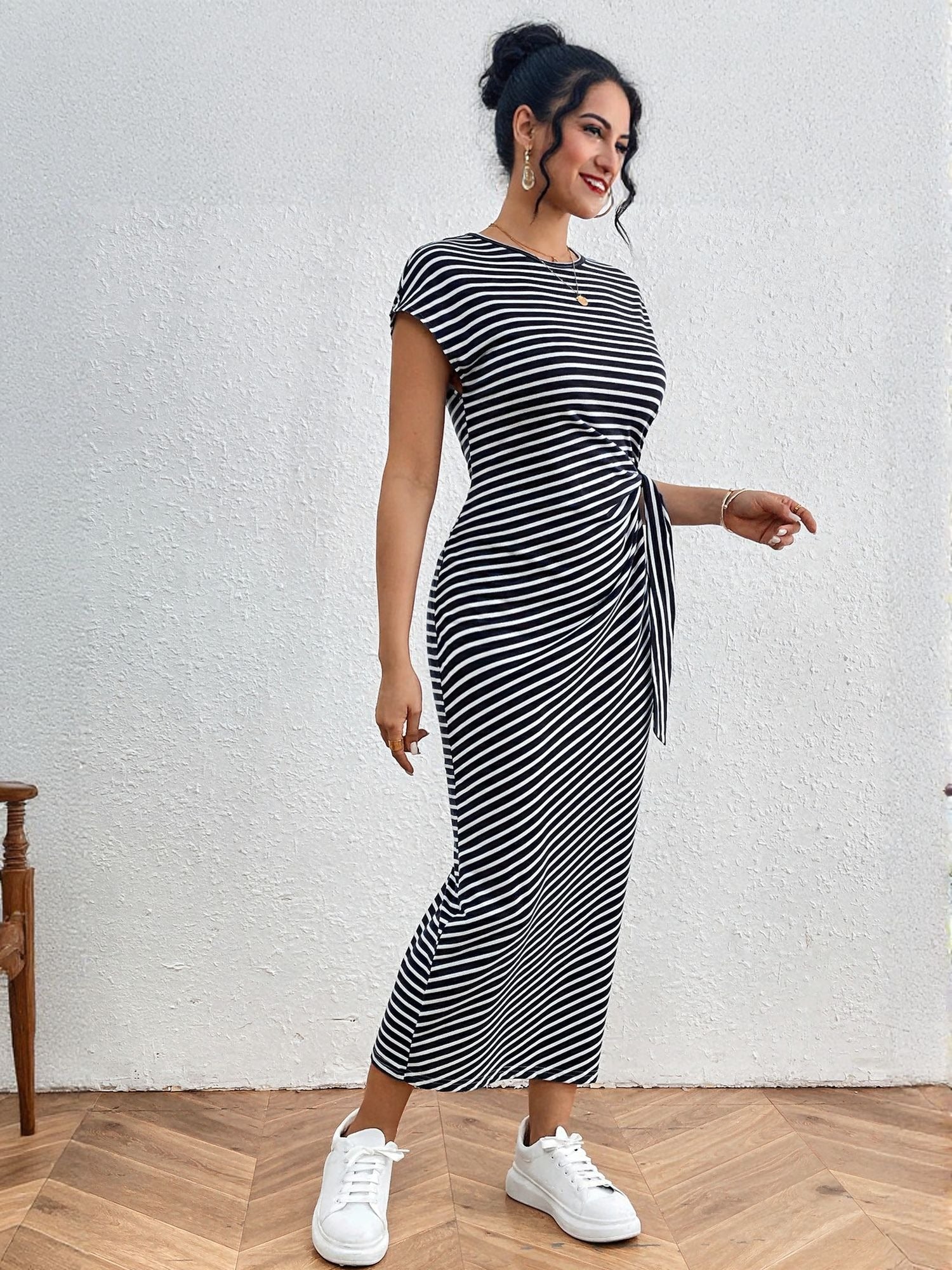 Stay cool and chic in this black bold printed vacation dress. The artistic patterns and breezy design make it an essential for your next beach vacation or a sunny garden party. Combine it with flat sandals and a straw bag for a relaxed, resort-ready look that is effortlessly beautiful.