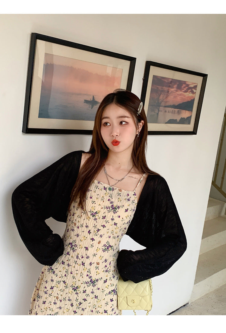 Black Full Sleeve Cropped Slouchy Cardigan