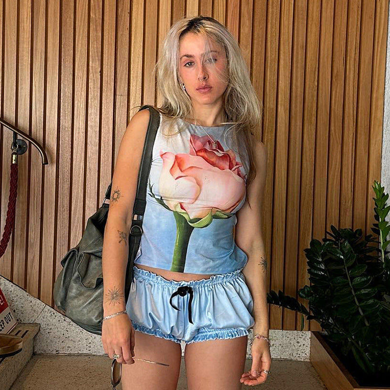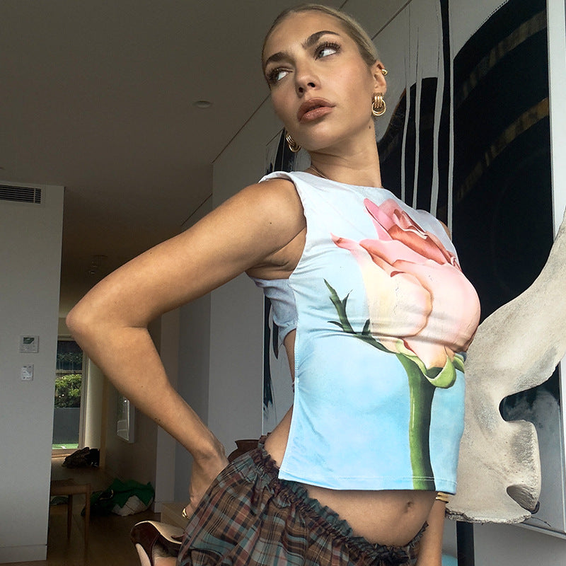 Own your outing in the Blue Sleeveless Floral Print Tank Top. Blue gives it attitude, and the street wear format keeps it real and wearable. From casual brunches to late-night chill, this is how Gen Z does going out.