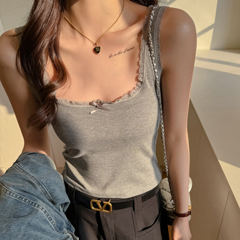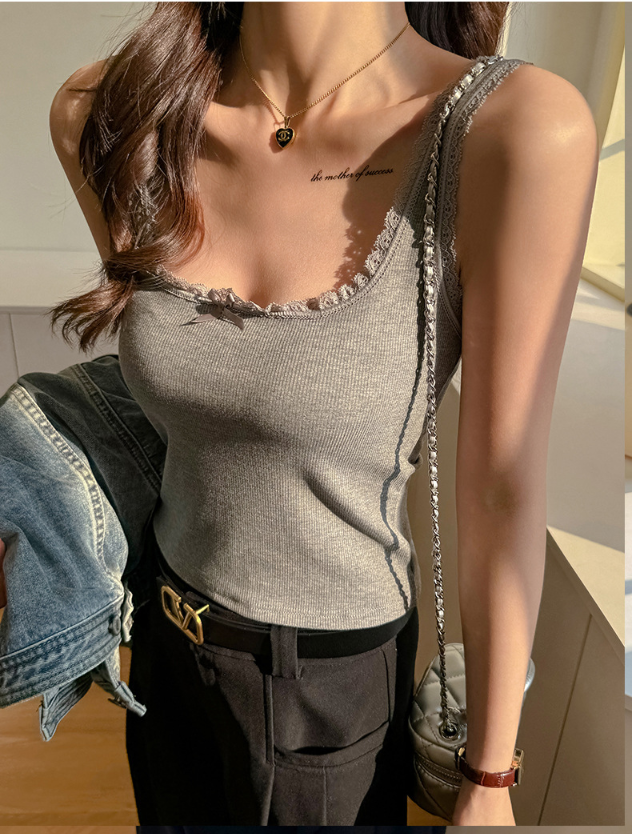 The Grey Ribbed Lace Trim Tank Top is your anytime top, made for plans that change on the go. With a grey tone, this street wear fits every mood. Easy to throw on, harder to take off.