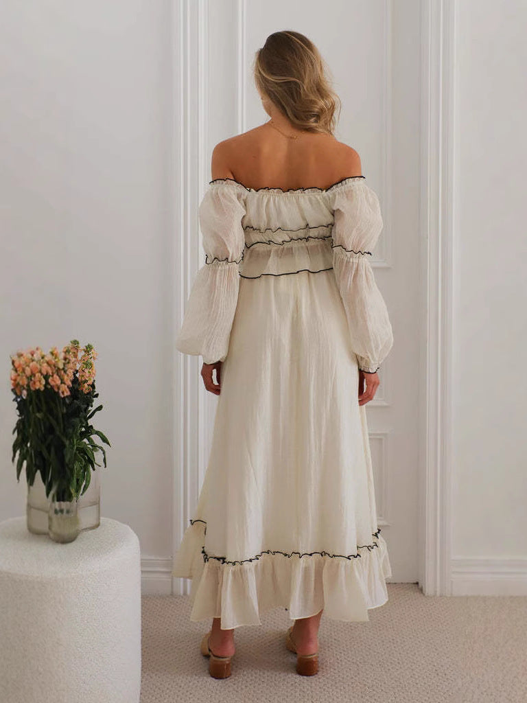 Cream Off-Shoulder Top And Skirt Co-Ord Set