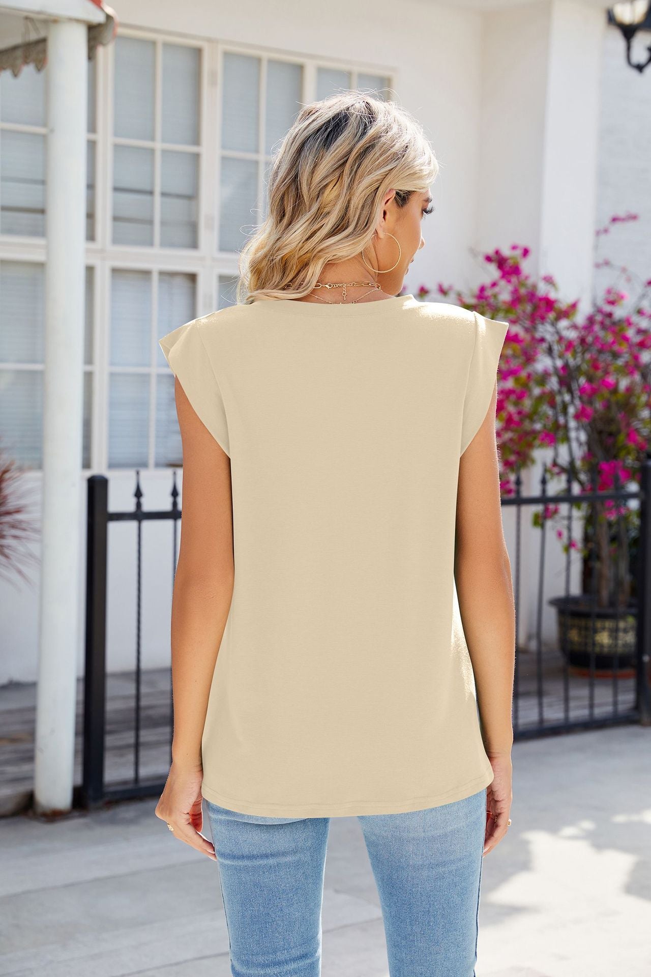 Cream Sleeveless V Neck Top