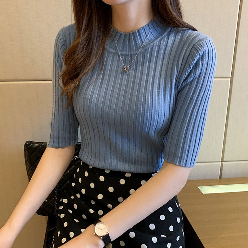 Blue High Neck Short Sleeve Top