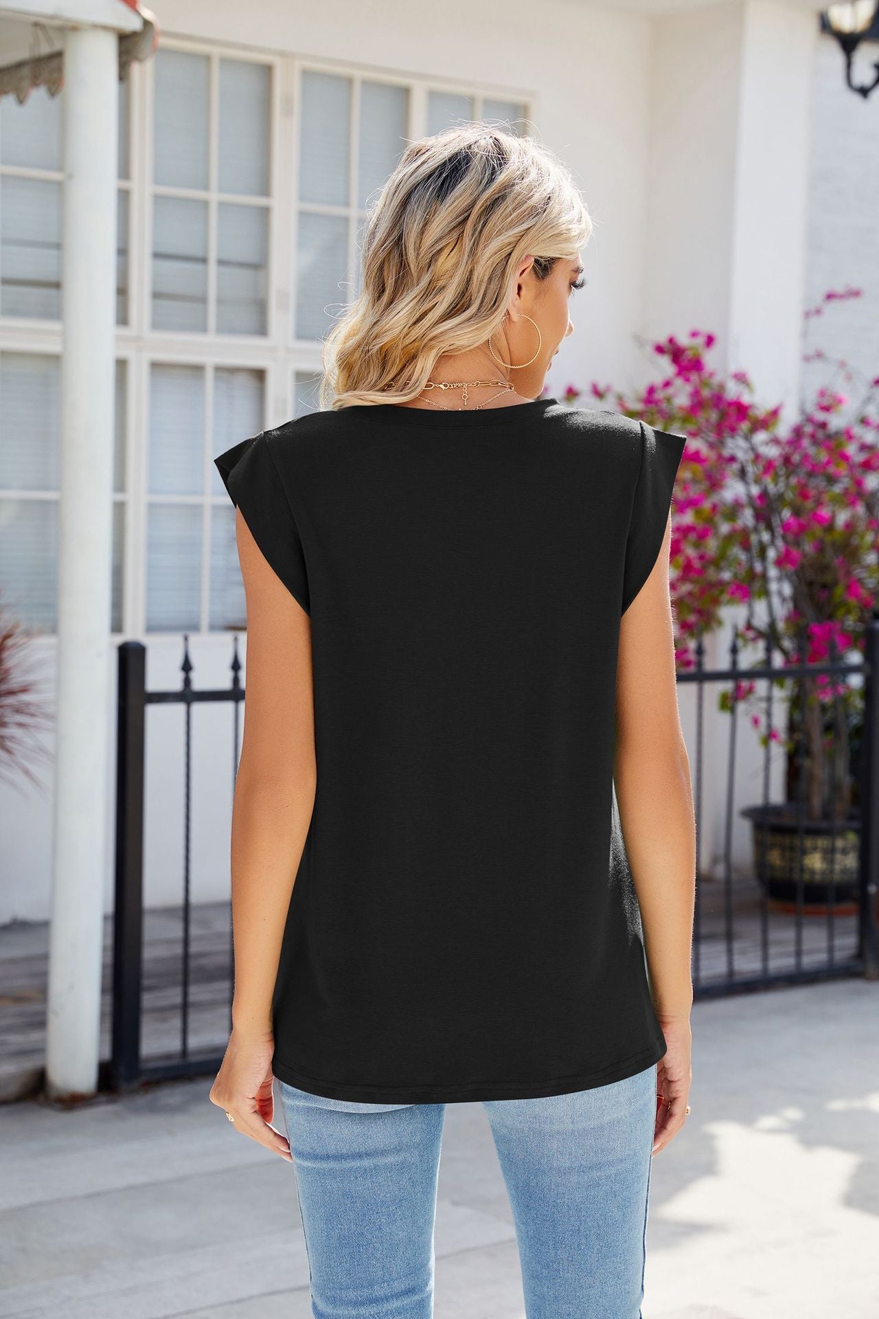 Black Sleeveless V Neck Top
