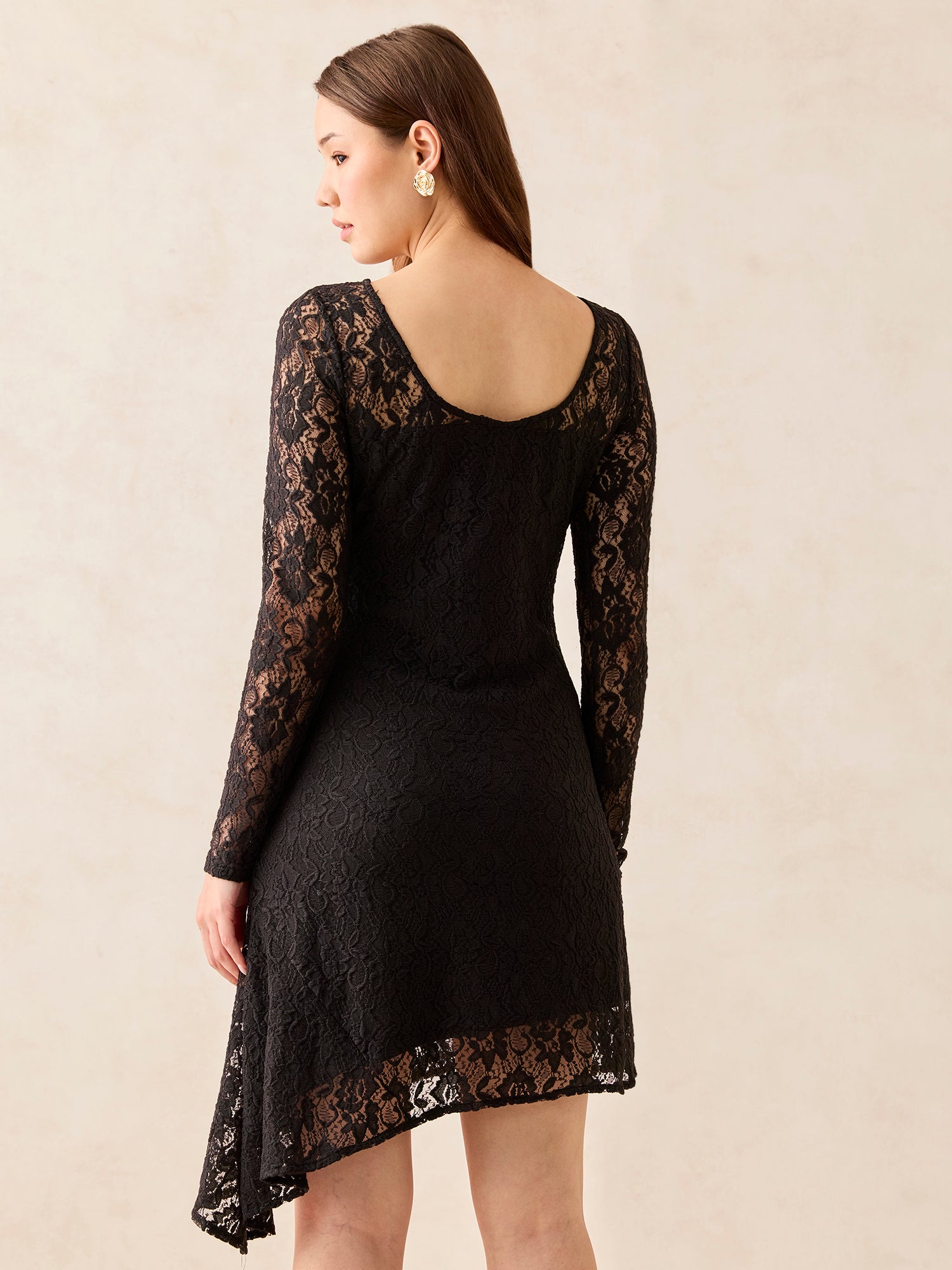 Black Full Sleeve Neck Cut-Out Detail Dress