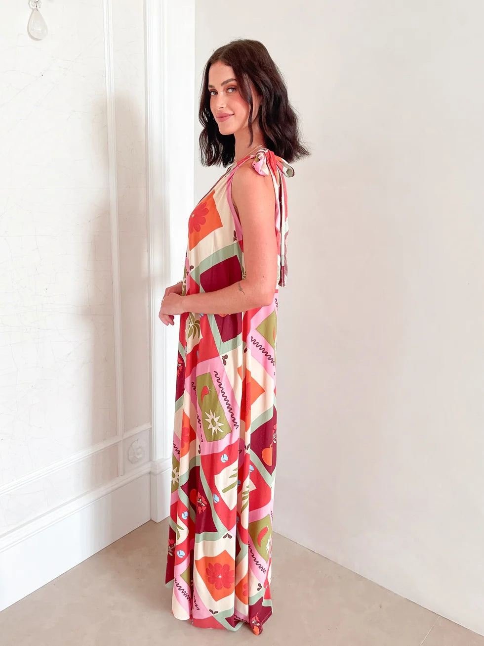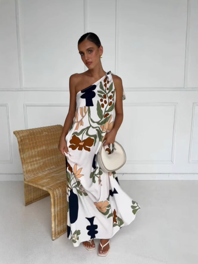 Multi One Shoulder Tie-Up Dress