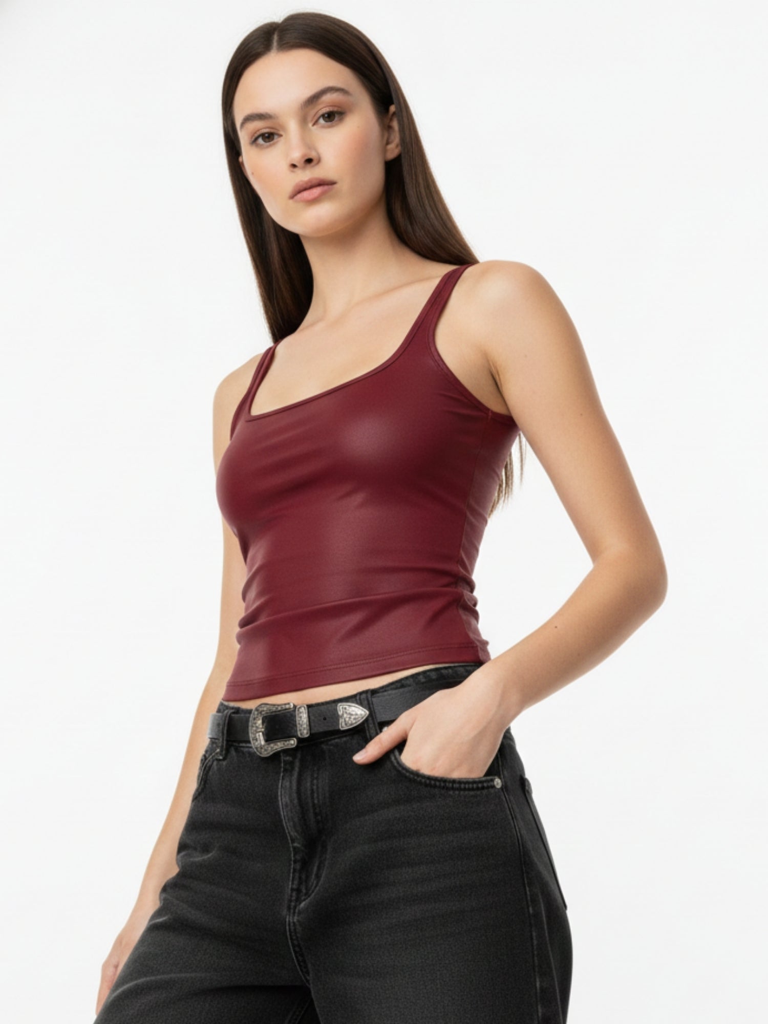 Burgundy Shoulder Strap Square Neck Tank