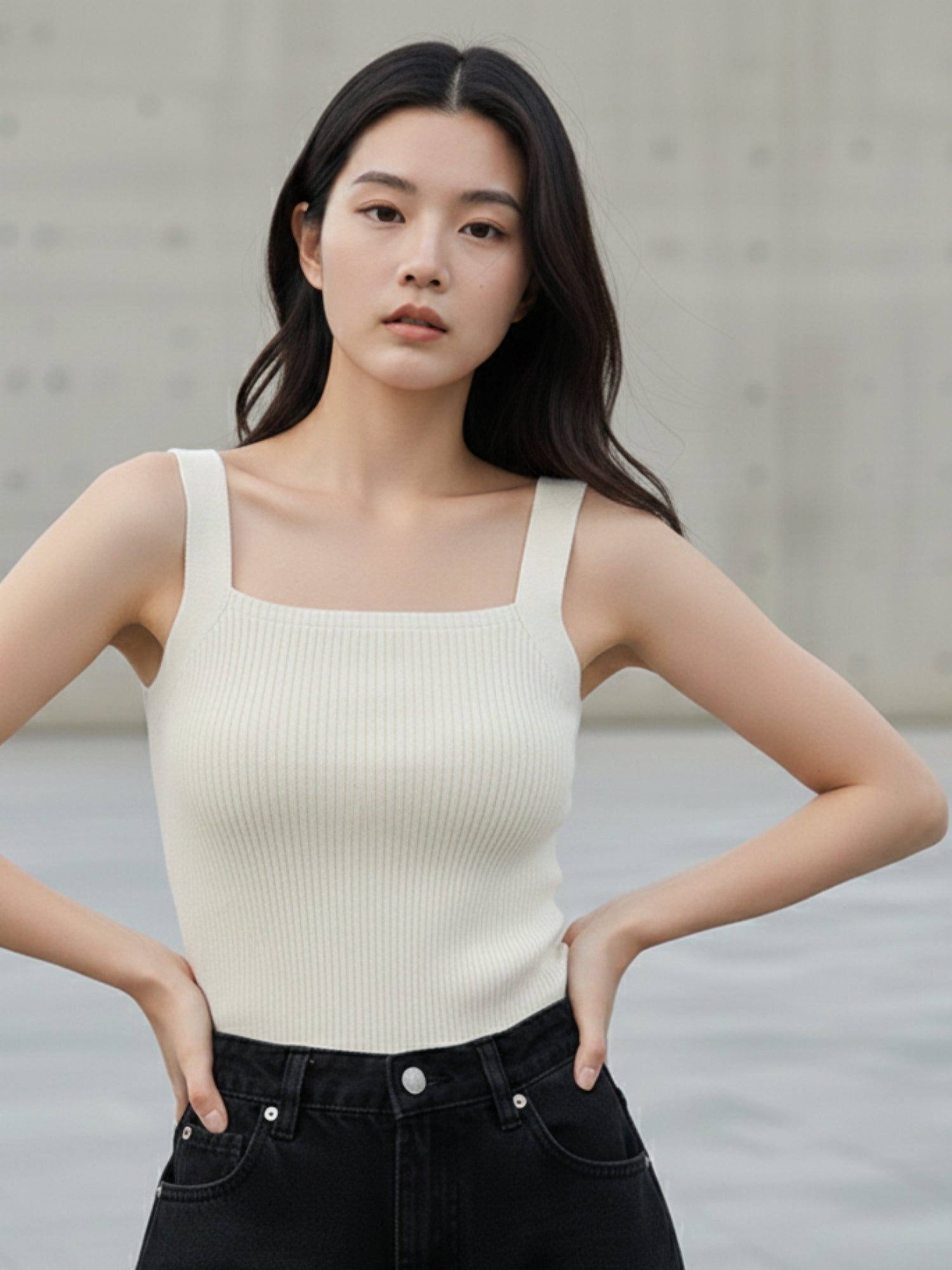 Off White Shoulder Strap Fitted Tank Top