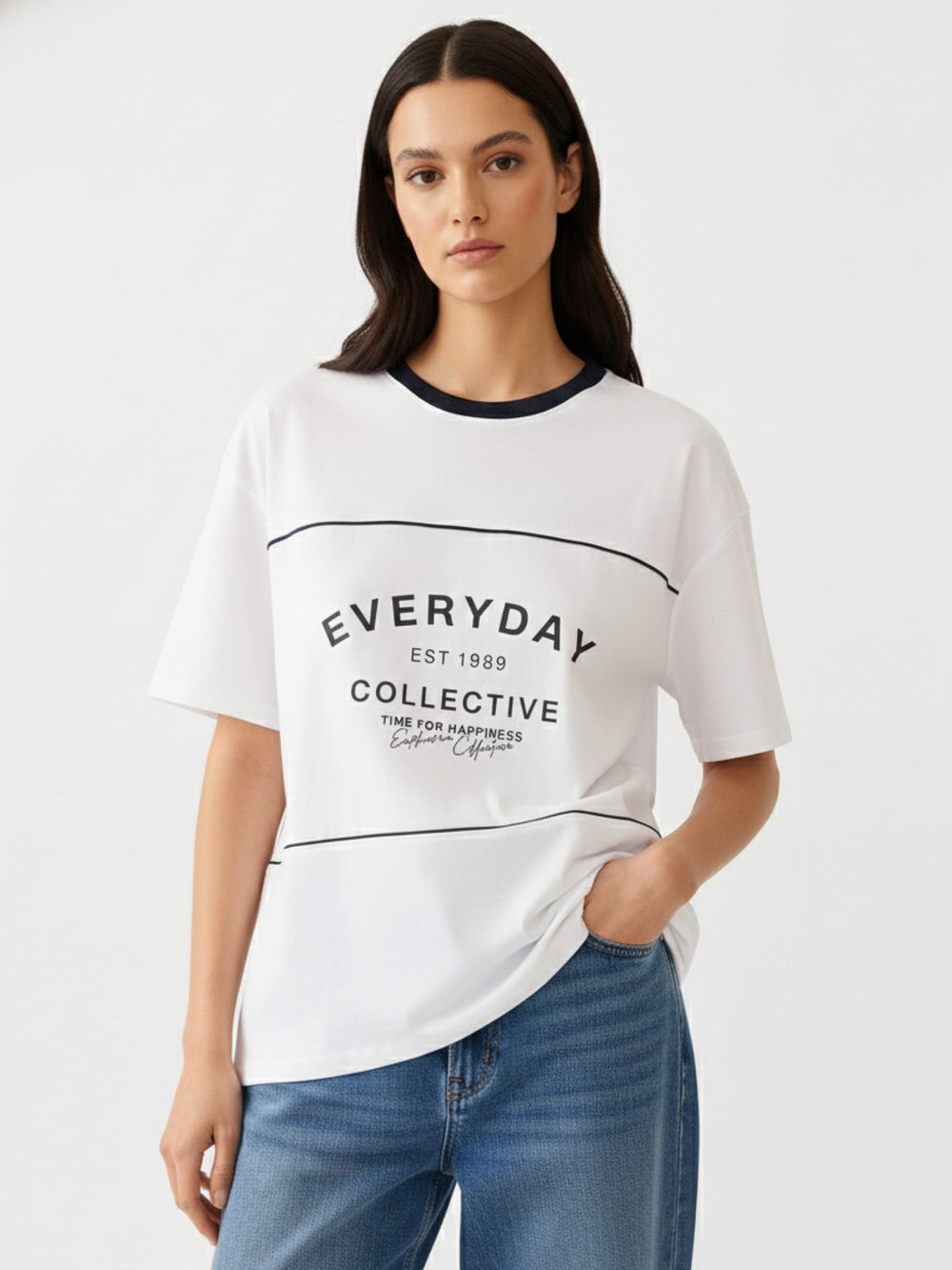 White Crew Neck Graphic Tshirt