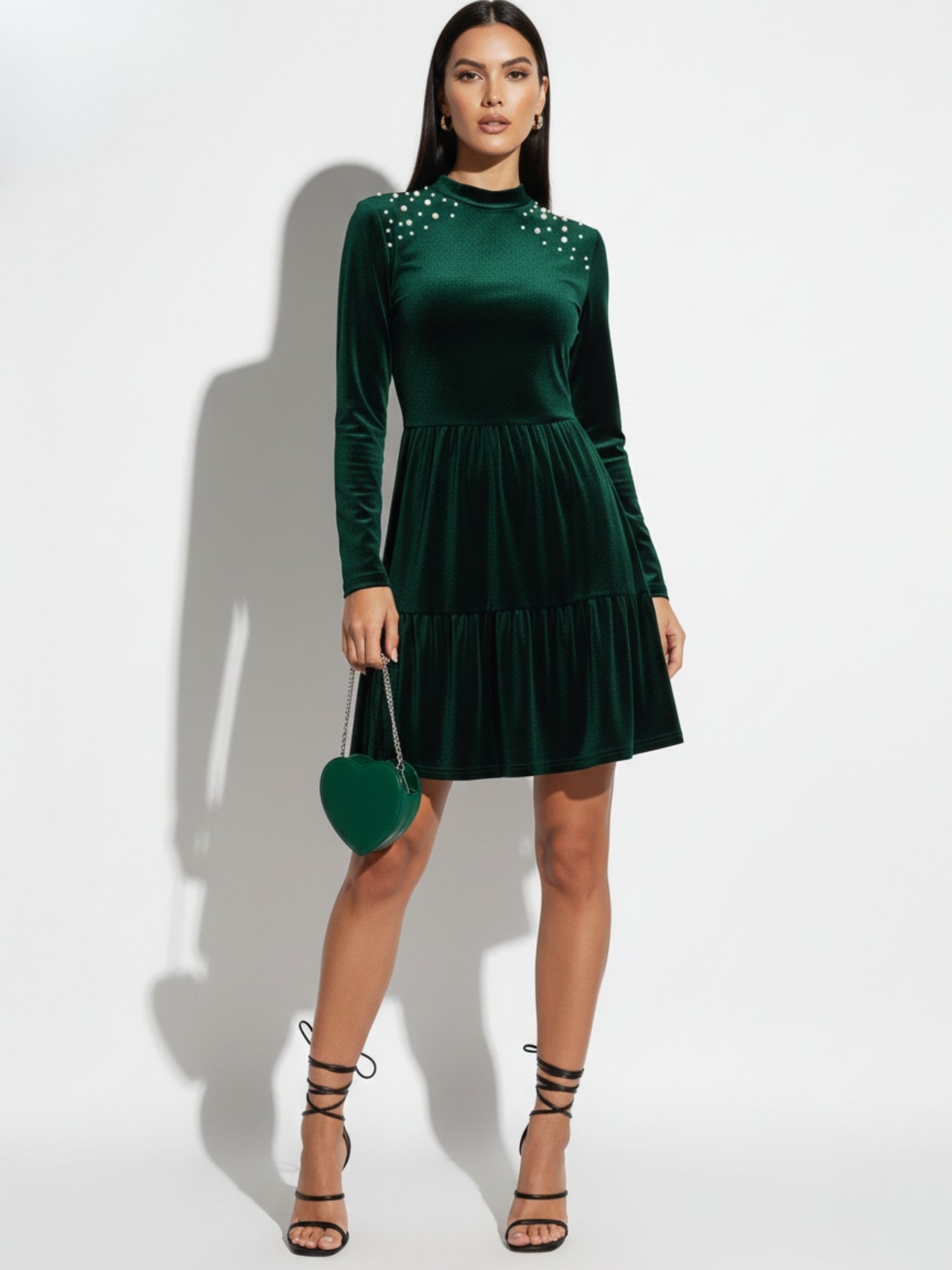 Elevate your style with this rose gold high neck with small studded top. The shimmering rose gold hue and high neck design create an elegant evening wear look suitable for weddings or anniversary dinners. Small studs provide a sophisticated glitz for formal celebrations. 8
