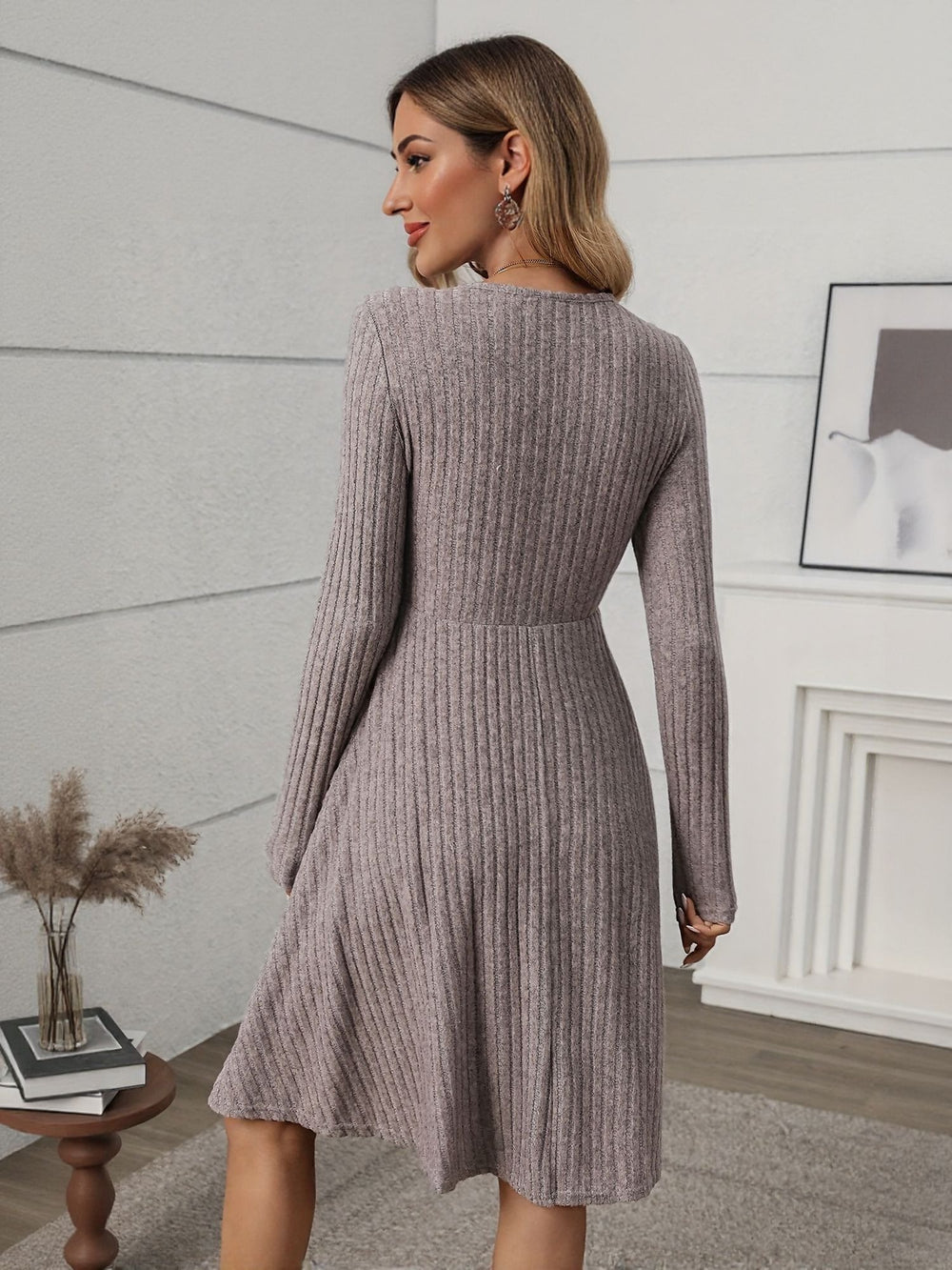 Grey Knit Wrap Skater Dress