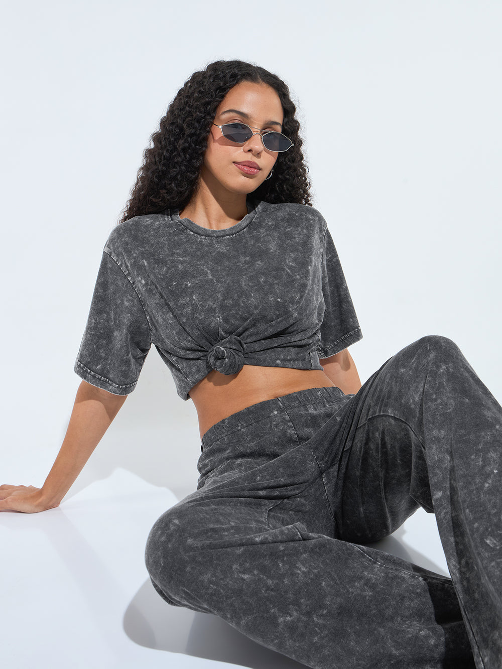Grey Acid Wash T-Shirt And Straight Pant