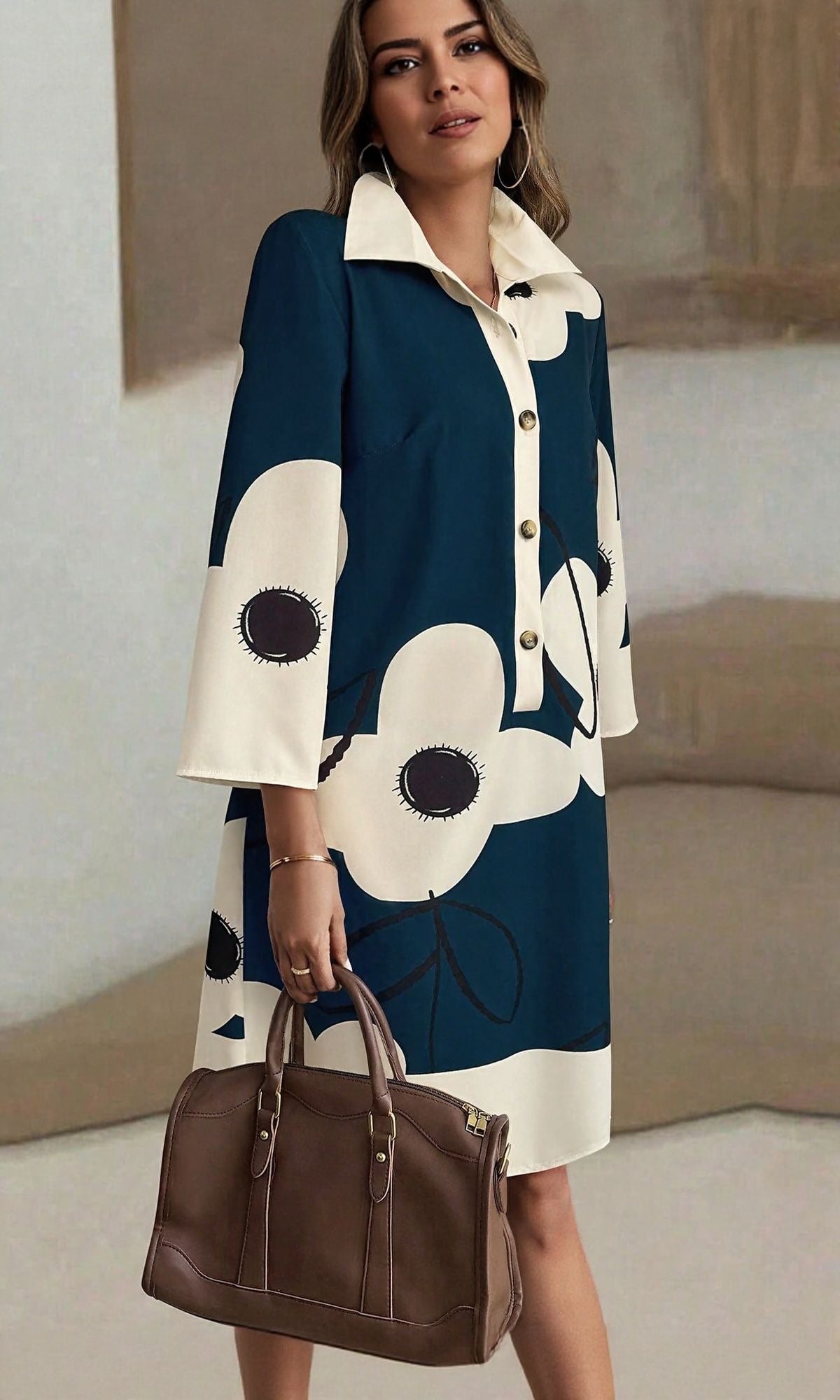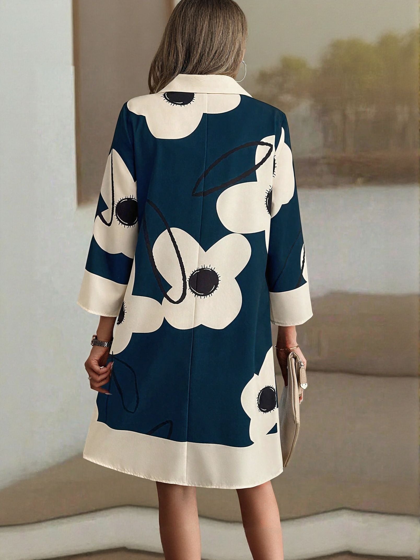 Navy Blue Abstract Print A Line Dress is the perfect vacation mini dress for your vacation moments. Featuring a flattering oversized fit, it shapes your silhouette and keeps you confident all day or night. Whether you're stepping out for a dinner or dancing the night away, this look is your go-to. Pair it with sneakers or heels, depending on your vibe. Add this blue statement to your going-out wardrobe today.