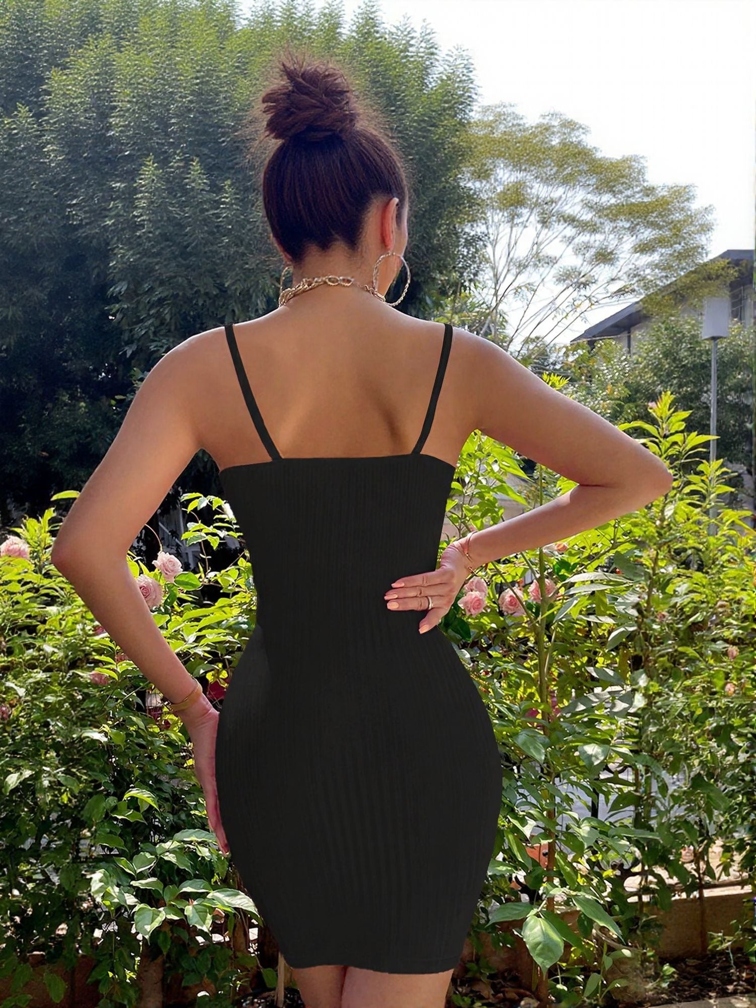 Black Strappy Fitted Dress is the perfect mini dress for your going-out days. Featuring a flattering bodycon fit, it shapes your silhouette and keeps you confident all day or night. Whether you're stepping out for a dinner or dancing the night away, this look is your go-to. Pair it with sneakers or heels, depending on your vibe. Add this black statement to your going-out wardrobe today.