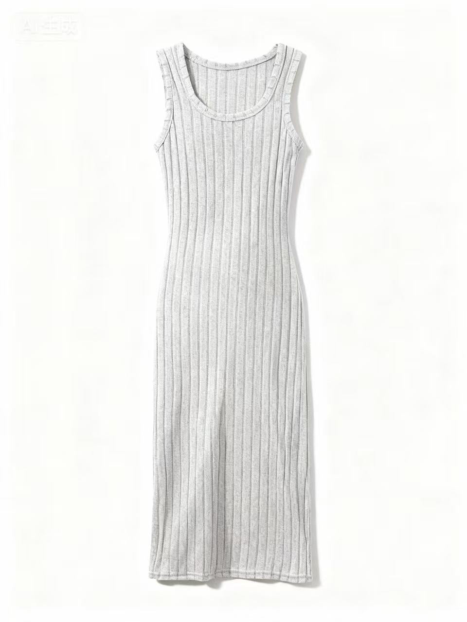 Grey Sleeveless Deep Back Neck Dress