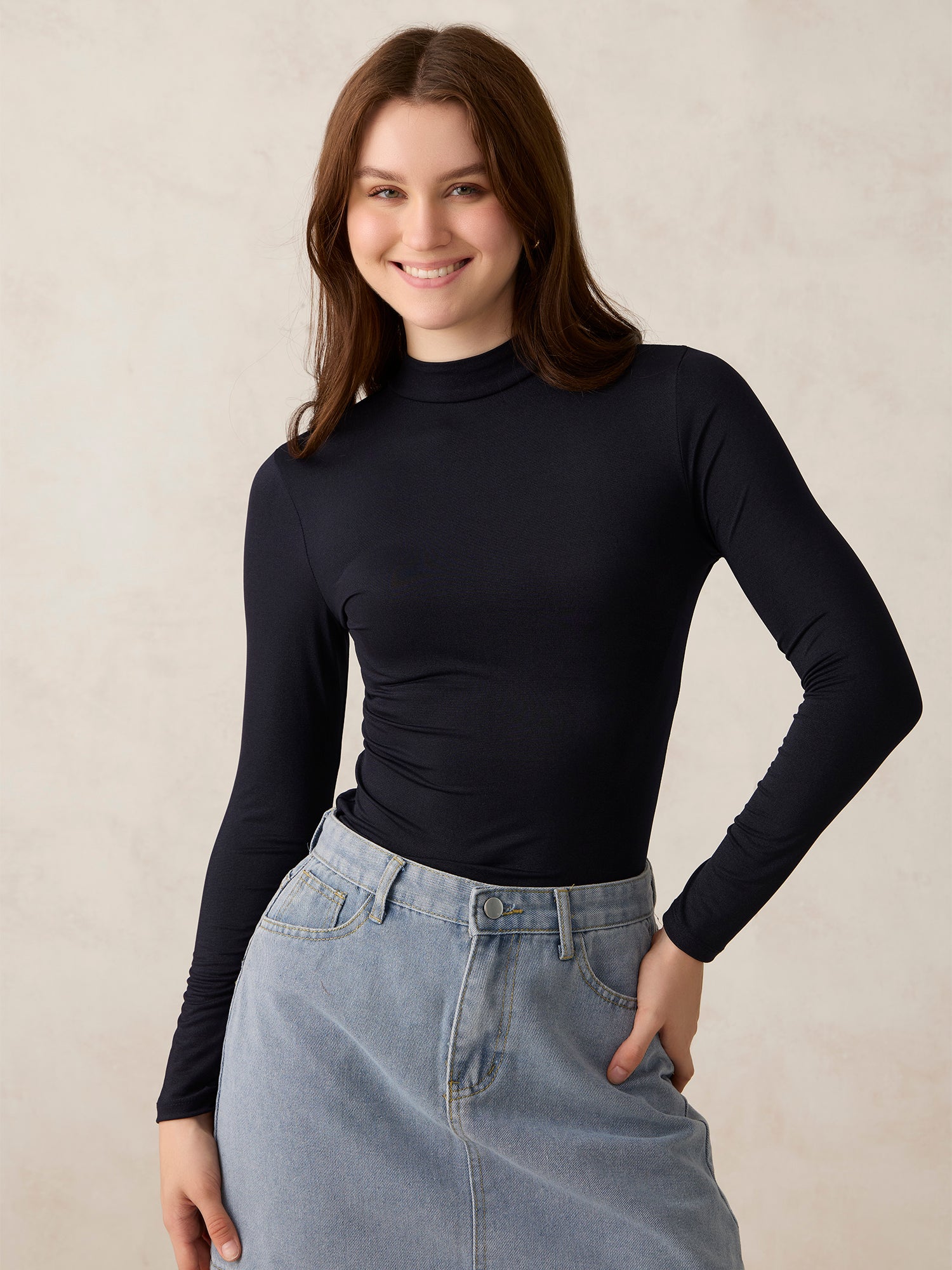 Experience ultimate comfort in this grey full-sleeved scoop-neck bodysuit. The soft neutral tone and minimalist design make it a go-to for daily commutes or as a basic layer for casual office wear. Style it under a blazer for a practical and effortless look that captures modern warmth.