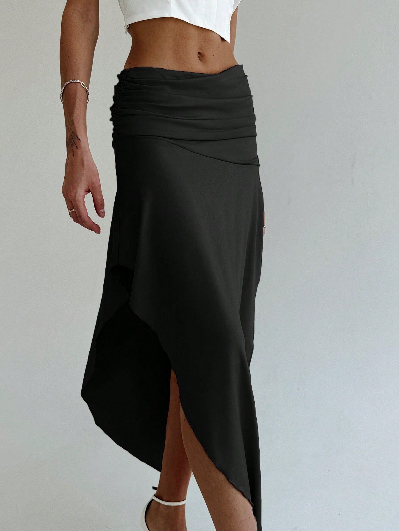 Black Ruched Fitted Skirt