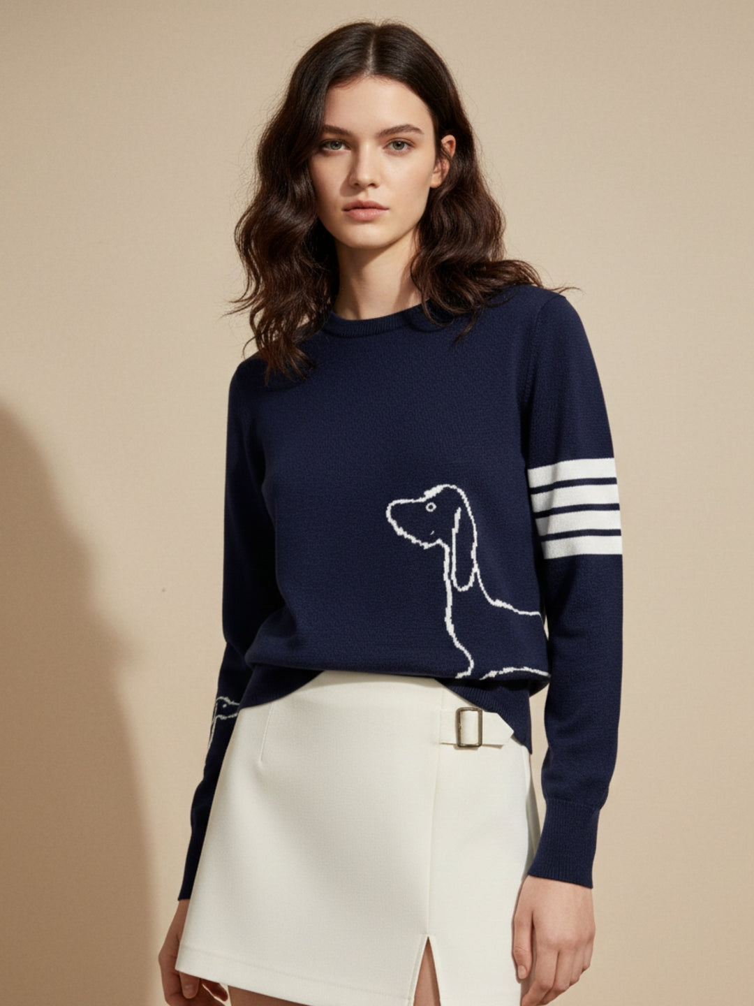 This off-white V-neck sweater is a versatile addition to your winter wardrobe. The subtle graphic print adds a contemporary touch, making it perfect for coffee dates or travel. This neutral graphic top also provides the comfort needed for productive library sessions.