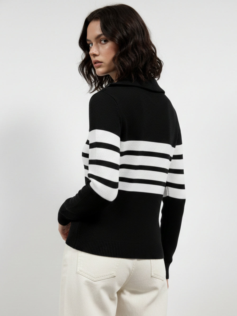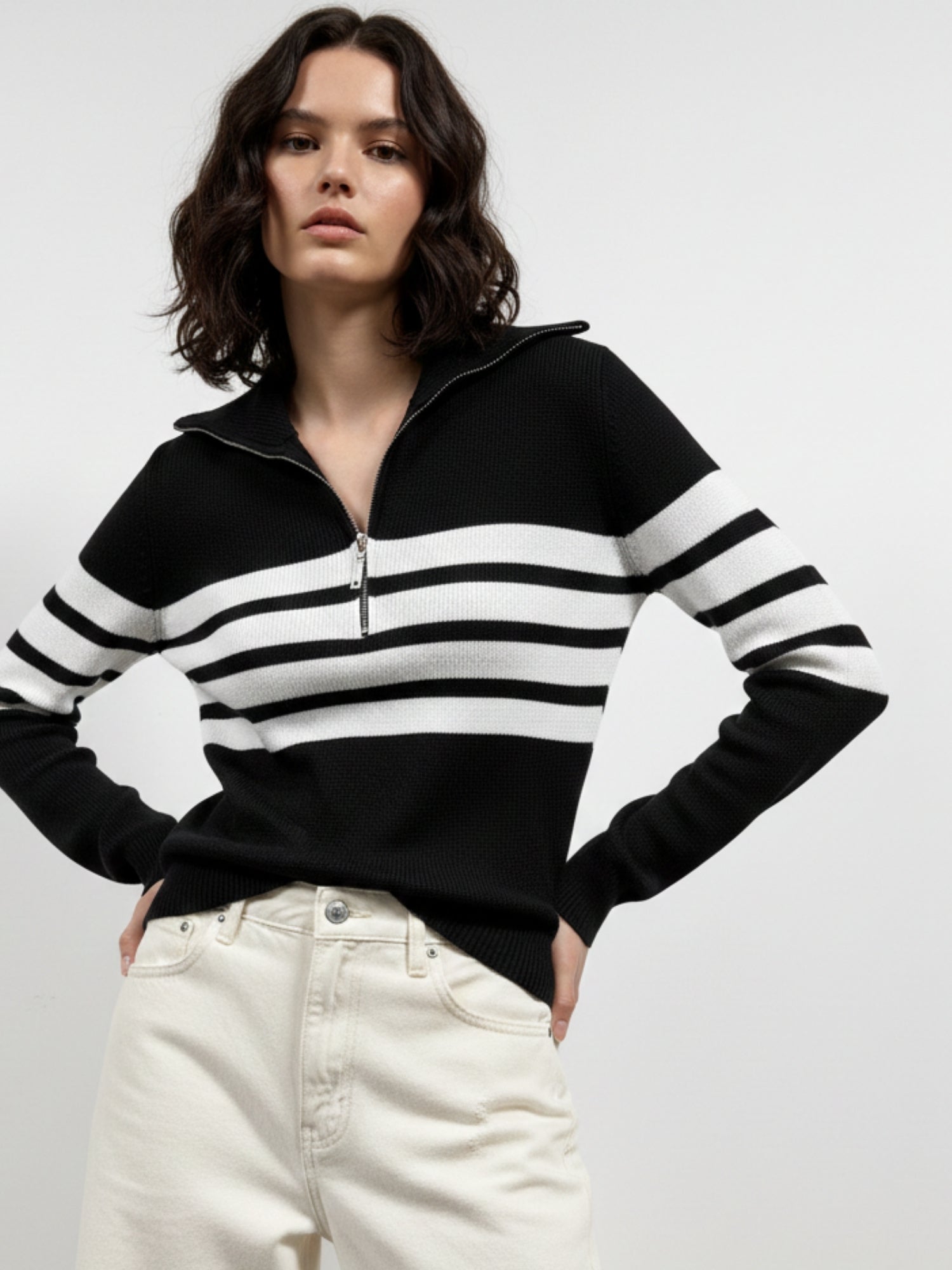 Black Full Sleeve Turtle Neck Half Zip Sweater