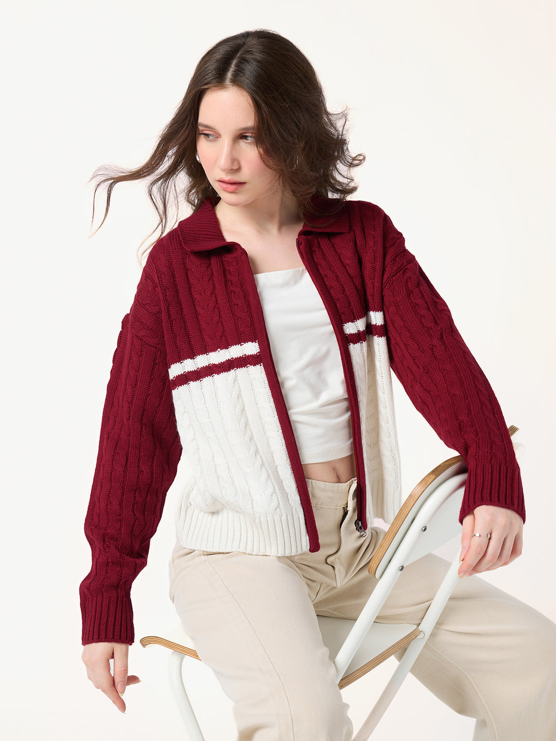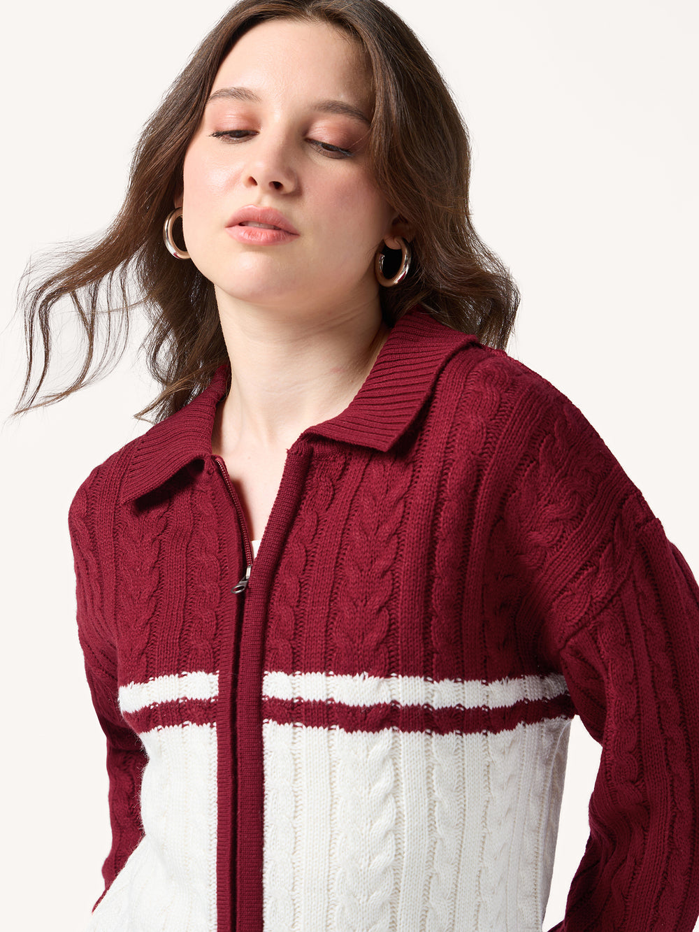 Maroon Full Sleeve Front Buttoned Slouchy Cardigan