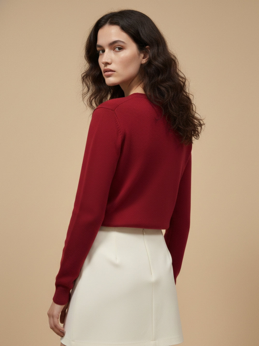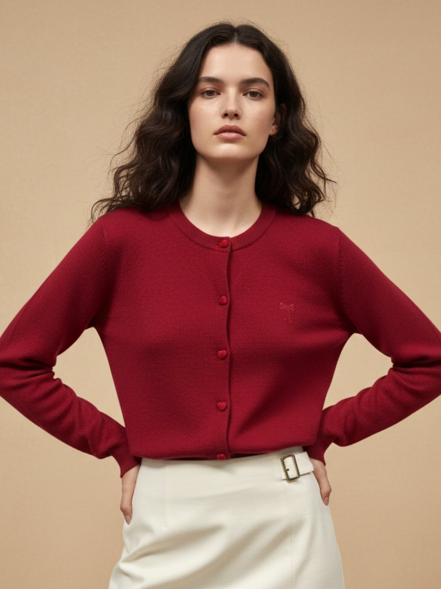 Make a vibrant statement in this red full-sleeve front-buttoned slouchy cardigan. The classic button-down design and bold red hue are ideal for holiday parties or a festive brunch. This cozy and trendy winter layer ensures a polished and unique presence during casual dates and winter socials.