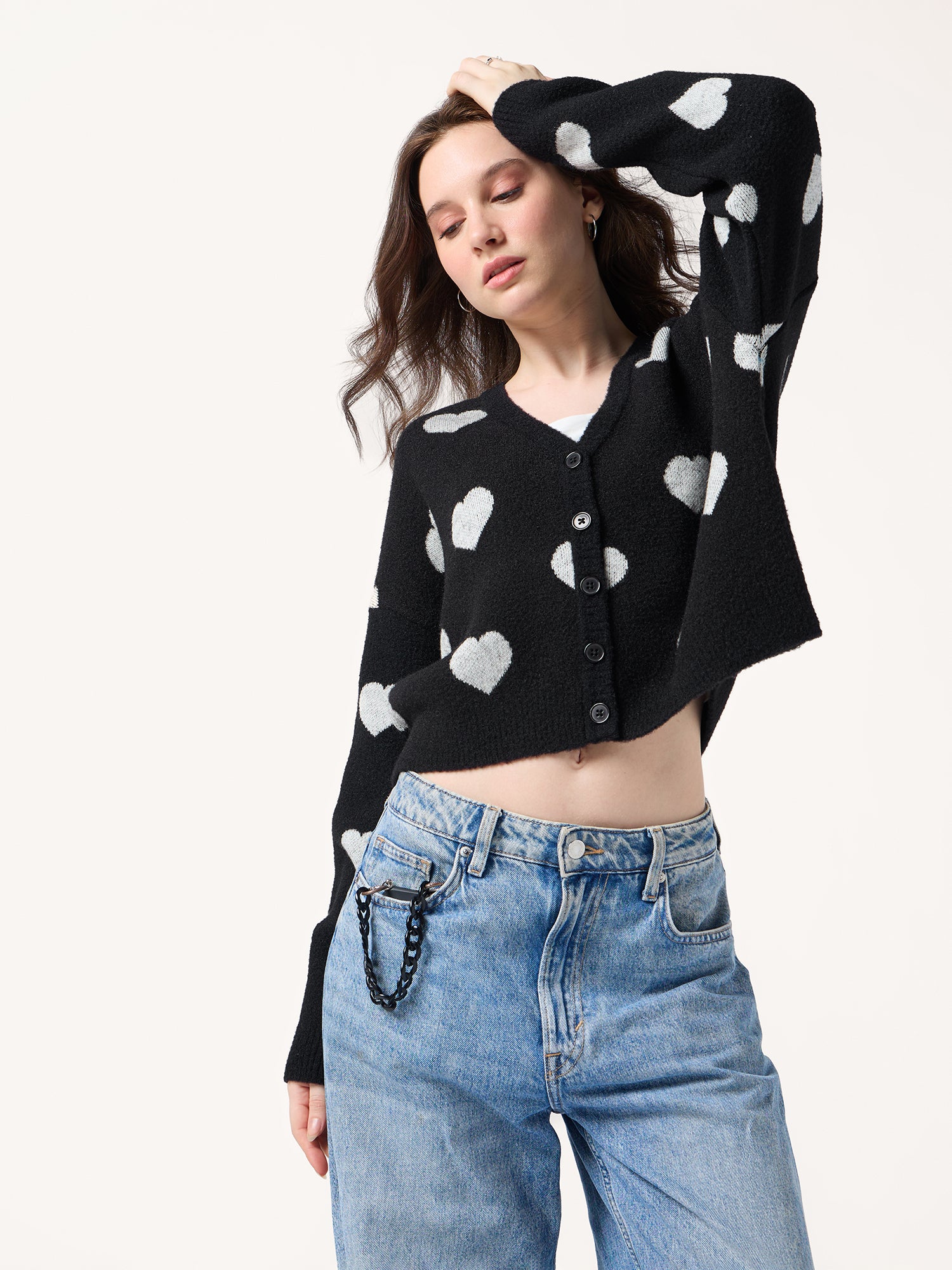 Lavender Full Sleeve Front Buttoned Slouchy Cardigan