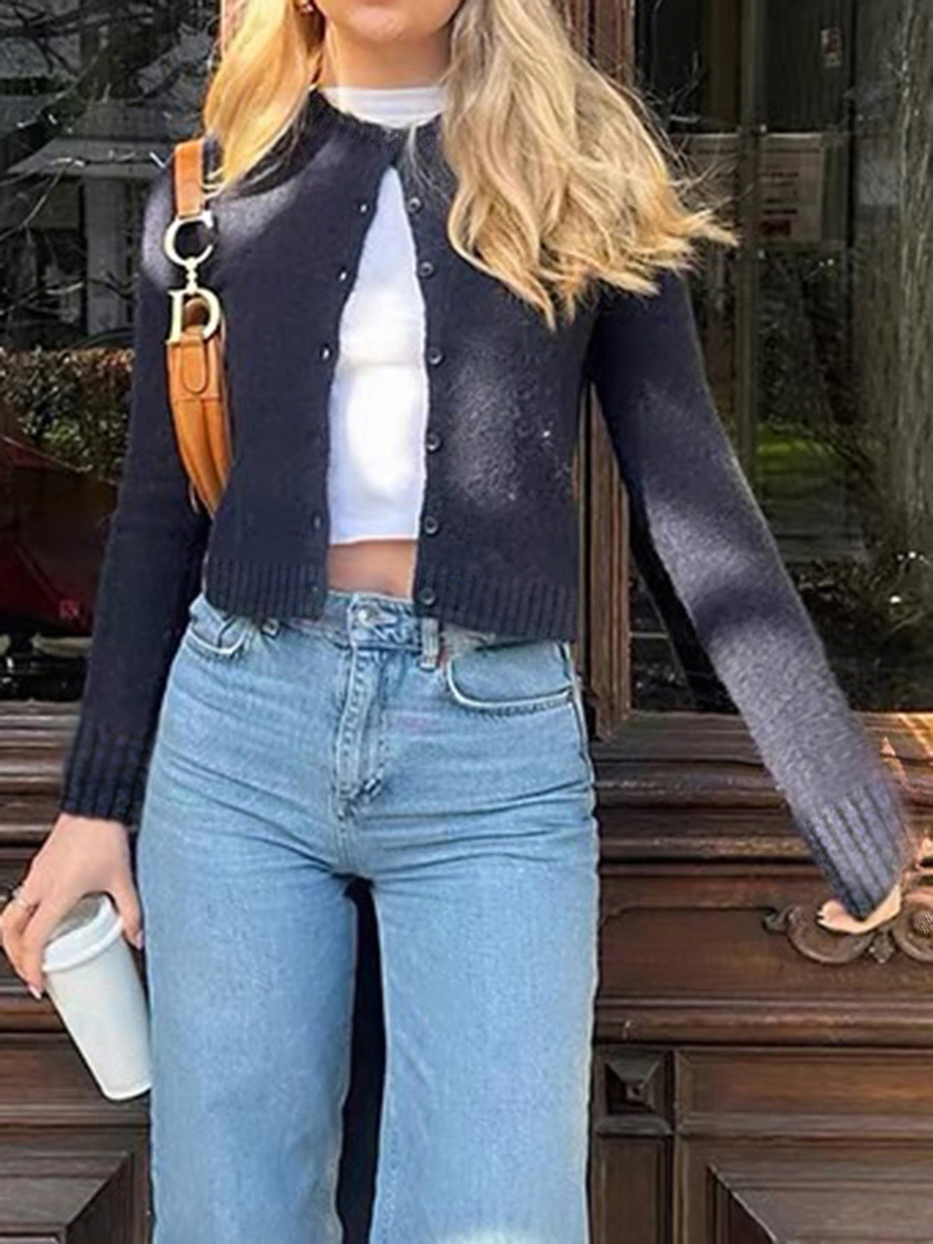 Navy Blue Solid Full Sleeved Casual Pull Over