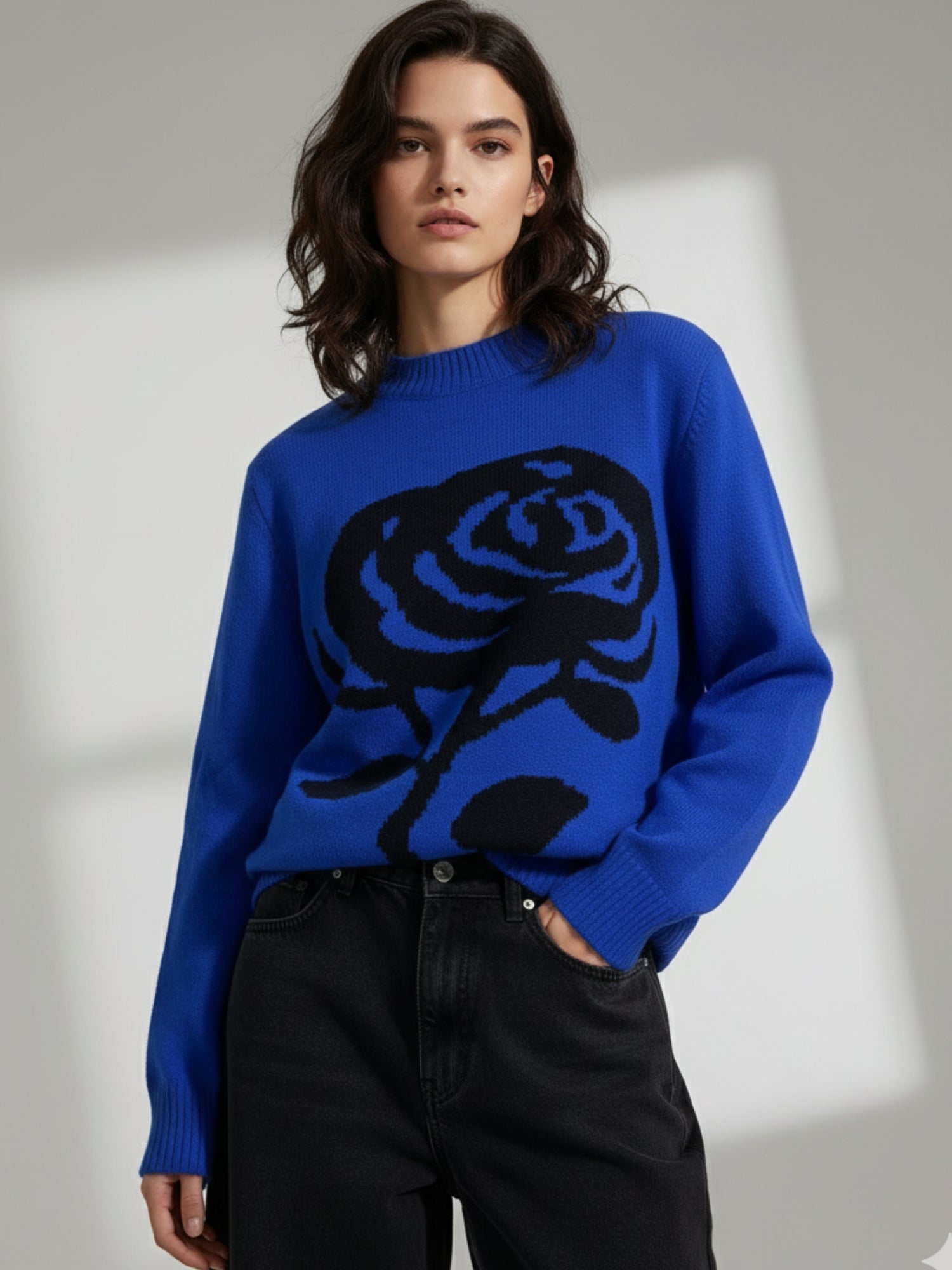 Blue Full Sleeve Button Trim Fitted Sweaters