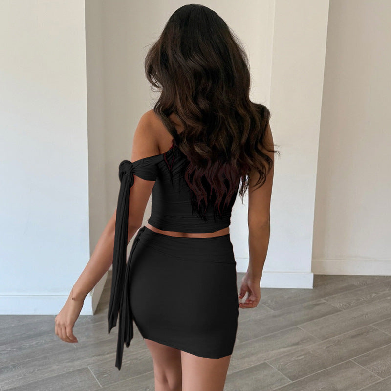 Black One-Off Shoulder Top With Mini Skirt Co-Ord Set