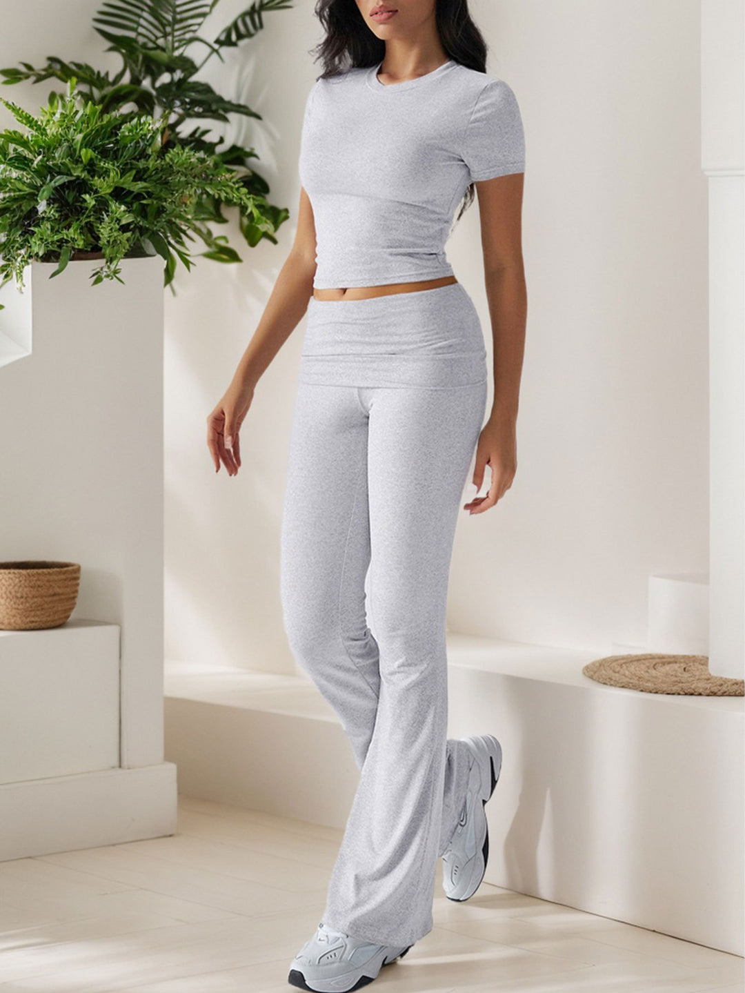 Grey Short Sleeve Top & Waist Ruched Pant Set