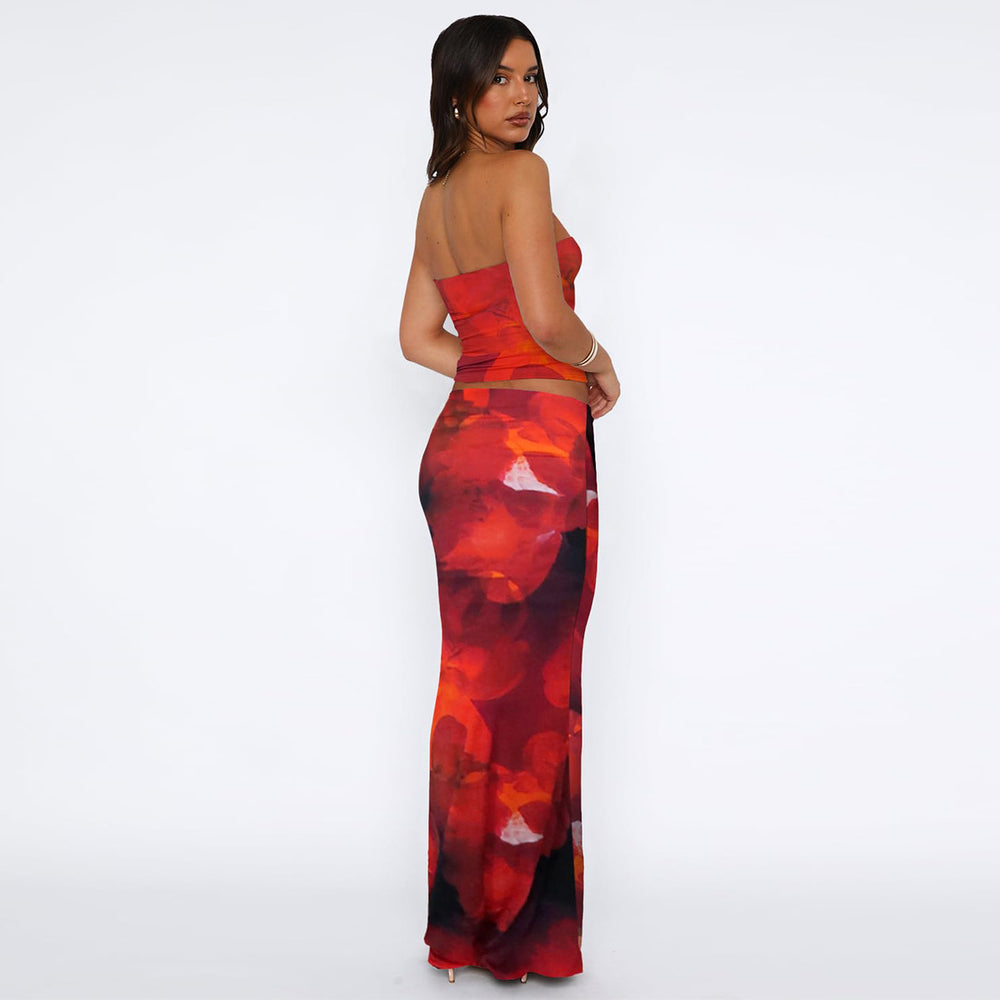 Multi Color Tube Top With Skirt Co-Ord Set