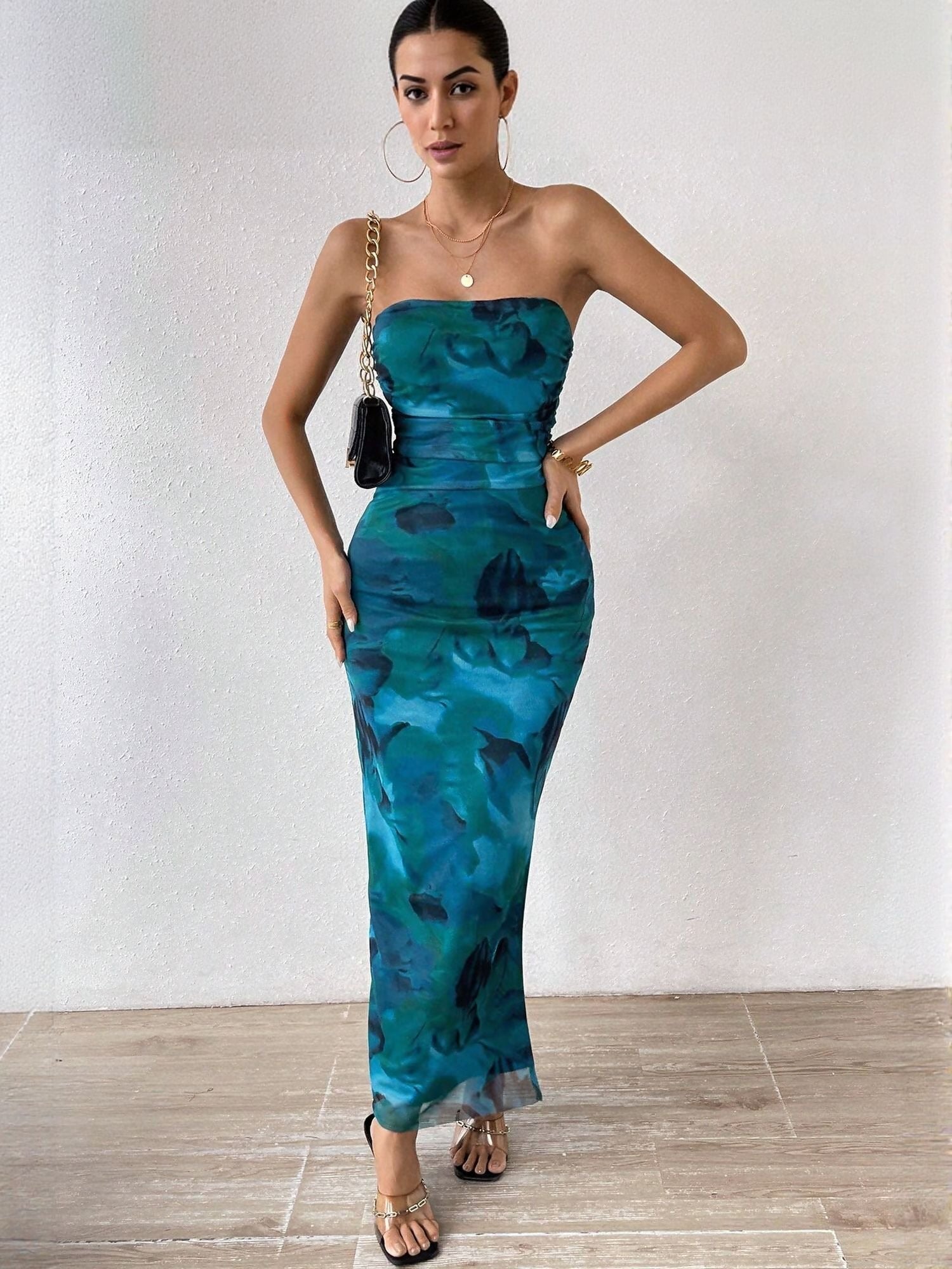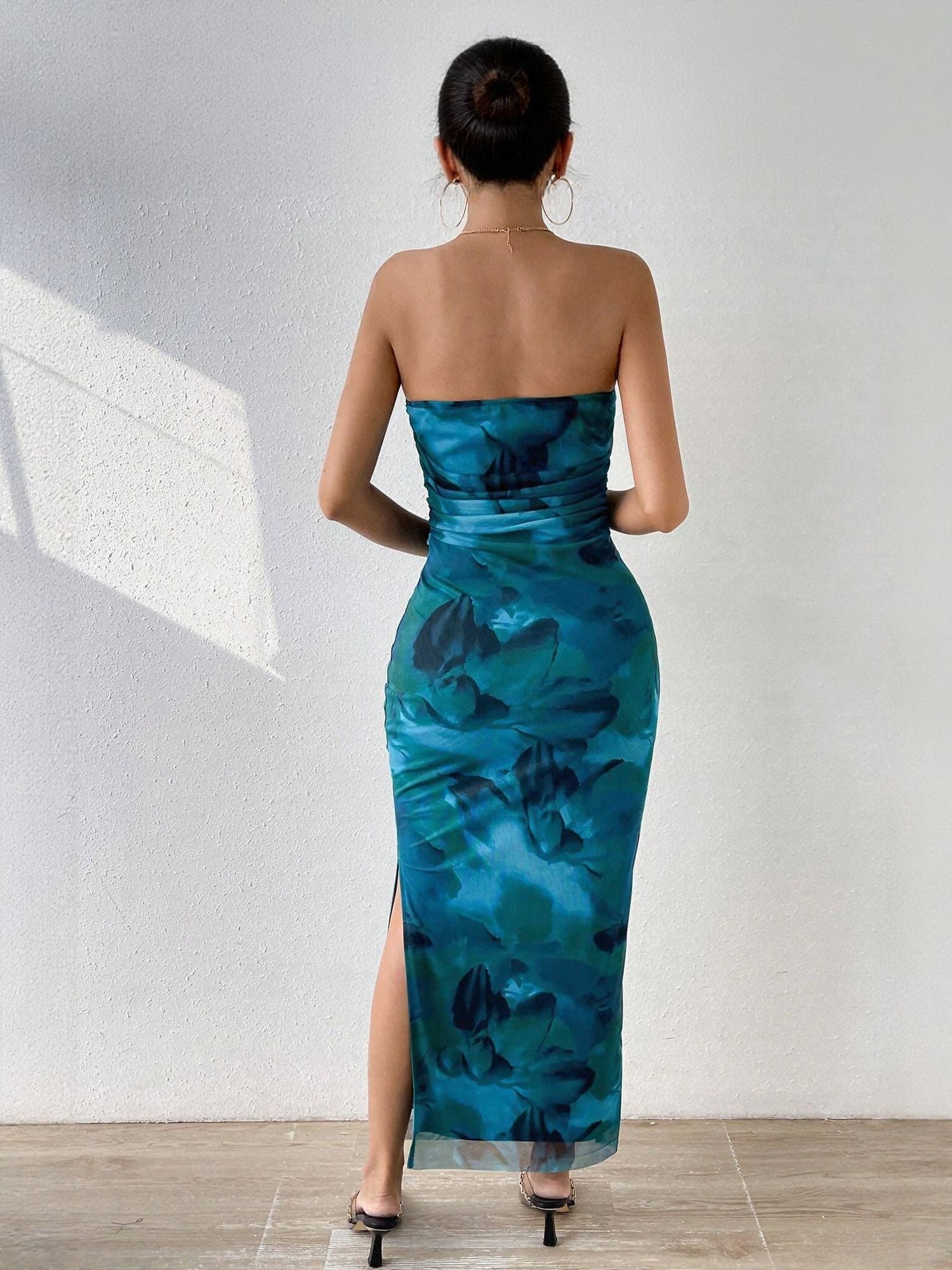Blue Digital Print Mesh Tube Dress