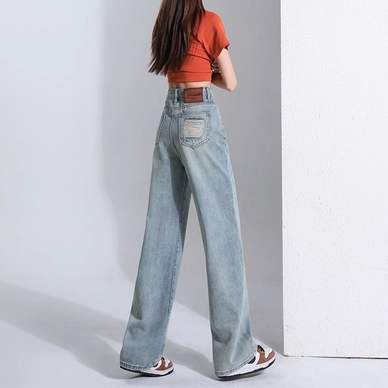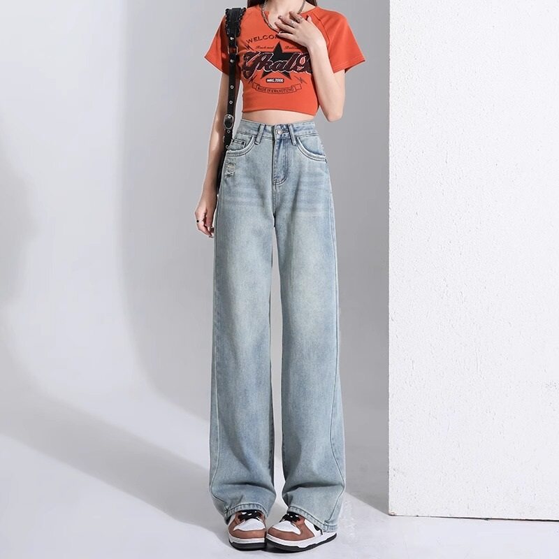 Blue High Waist Straight Denim