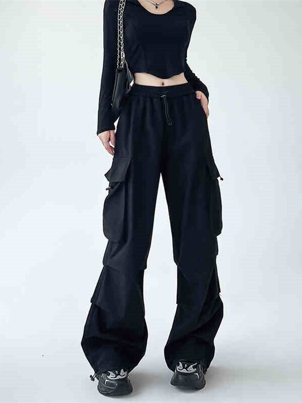 Black Parachute Pants with Pockets