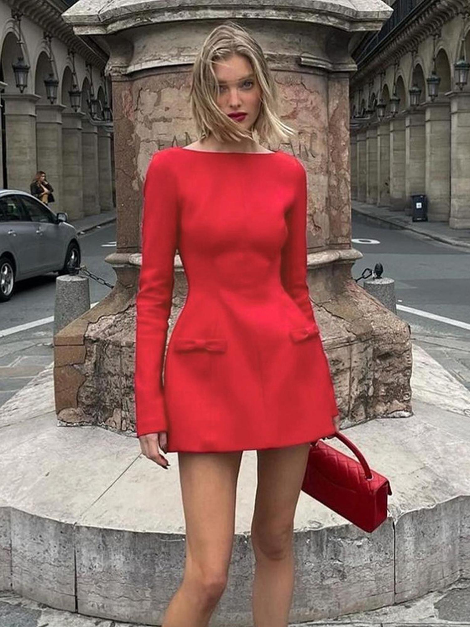 Heading out? Red Sweetheart Neck Full Sleeve Dress is ready. With a fit & flare shape and wearable this shade, this party mini dress makes styling easy. Designed for party plans, it’s your quick outfit fix that feels polished and pulled together without overthinking it.