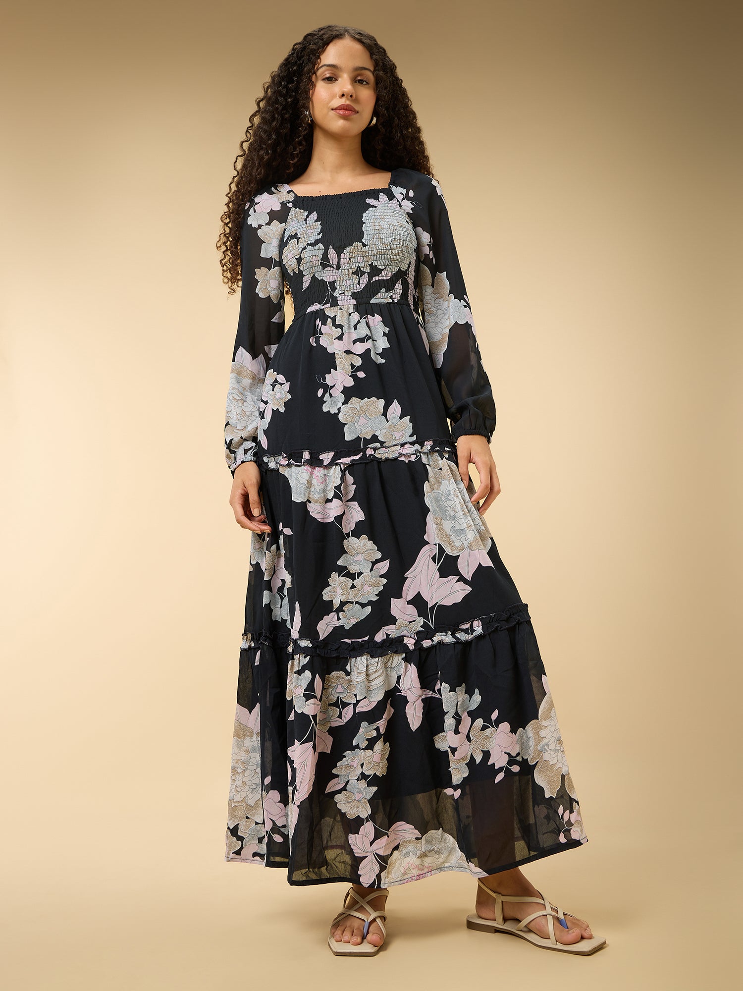 Make getting ready the easiest part of going out. This flared maxi dress for women delivers a smooth full-length fit that’s perfect for casual parties or dinner plans. Designed as reliable party wear you can count on, it’s a long dress for women that balances style and comfort effortlessly. The kind of piece that’s ready for all your ‘what should I wear?’ moments.