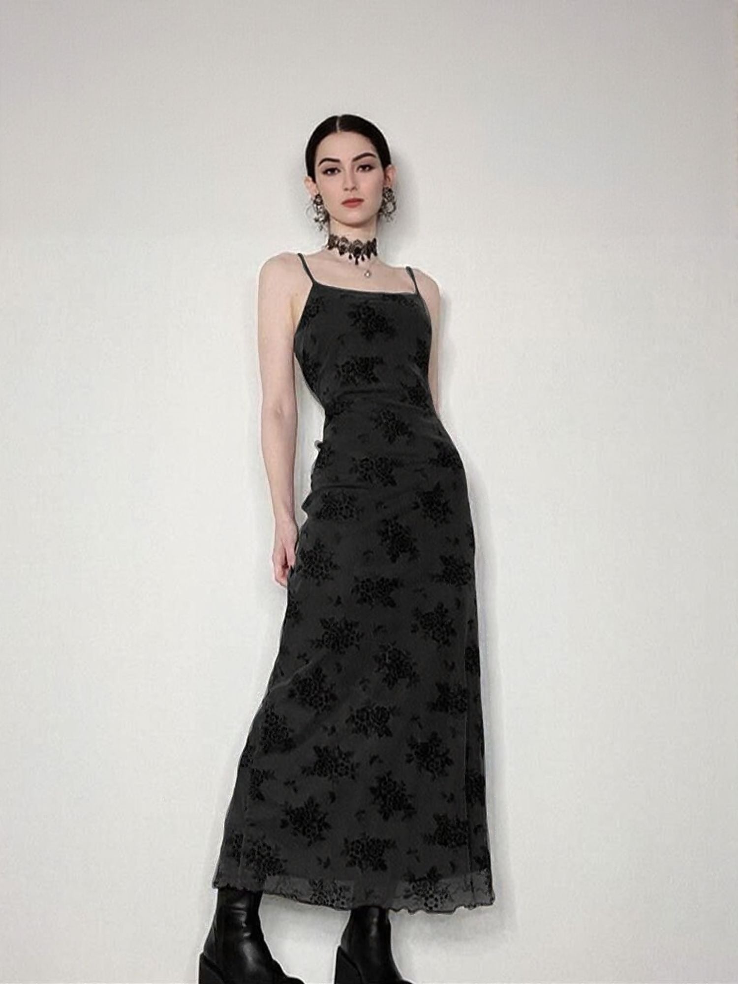 Black Floral Print Slip Maxi Dress