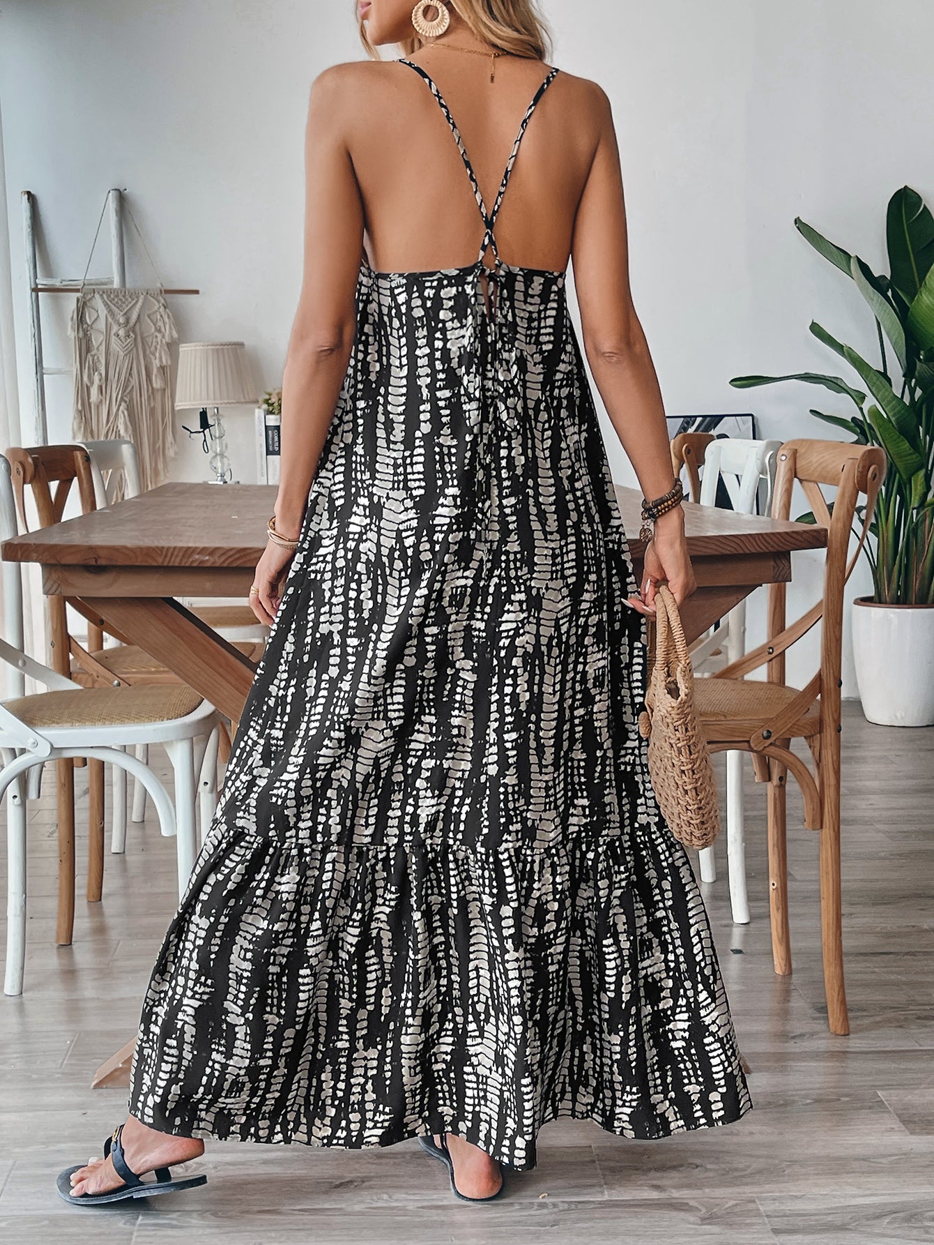 Black Strappy Printed Maxi Dress
