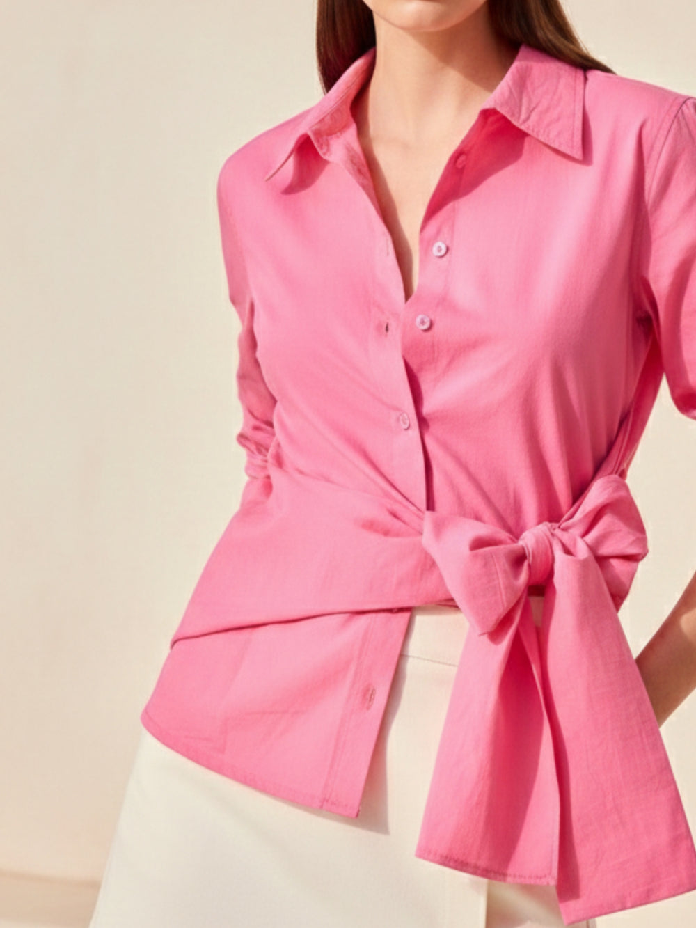 The Pink Front Knoted Shirt is built for real plans and real movement. Bold in pink, this casual wear transitions easily from daywear to after-dark fits. Finished with attention to ease and flow.
