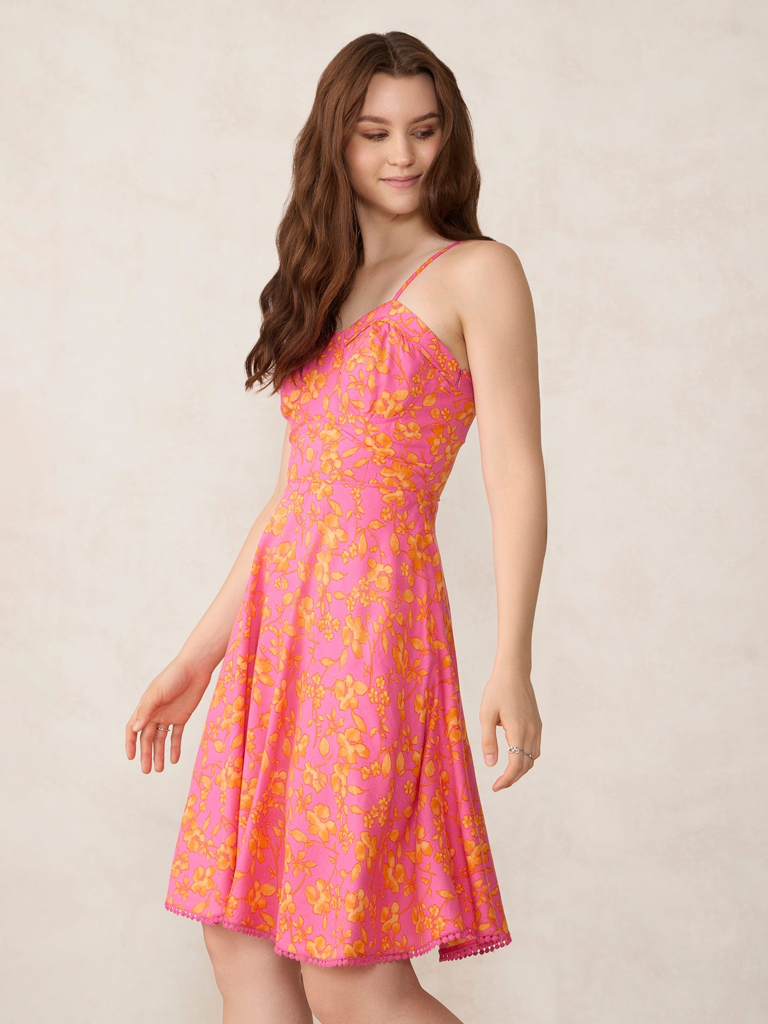 Step into the scene with Pink Printed Fit And Flare Mini Dress, a must-have vacation mini dress designed for vacation moments. The flared silhouette hugs the body for a sleek and defined look. Comfortable yet elevated, it’s ideal for evening events, birthday plans, or your next city outing. Add some glam with accessories or keep it simple,it works either way. A perfect pink addition to your occasion-ready wardrobe.