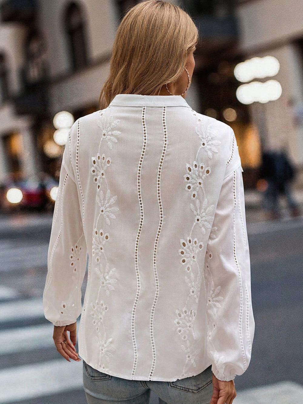 The White Full Sleeves Schiffli Blouse is perfect for those on-the-go days that need a little style boost. White adds that spark, while the street wear shape keeps things minimal and versatile. Moves with you, effortlessly.