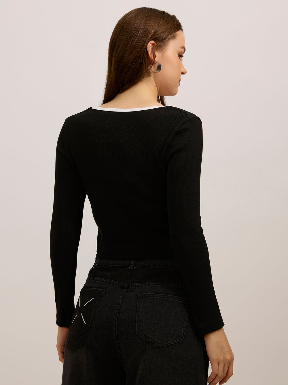 Make getting ready feel like a breeze with the Black Contrast Rib Knit Top. Perfect for casual wear scenes and low-effort styling, it’s the kind of top you’ll keep coming back to. The design blends ease with a hint of edge,made for the girl who's always out the door. Get dressed, get out.