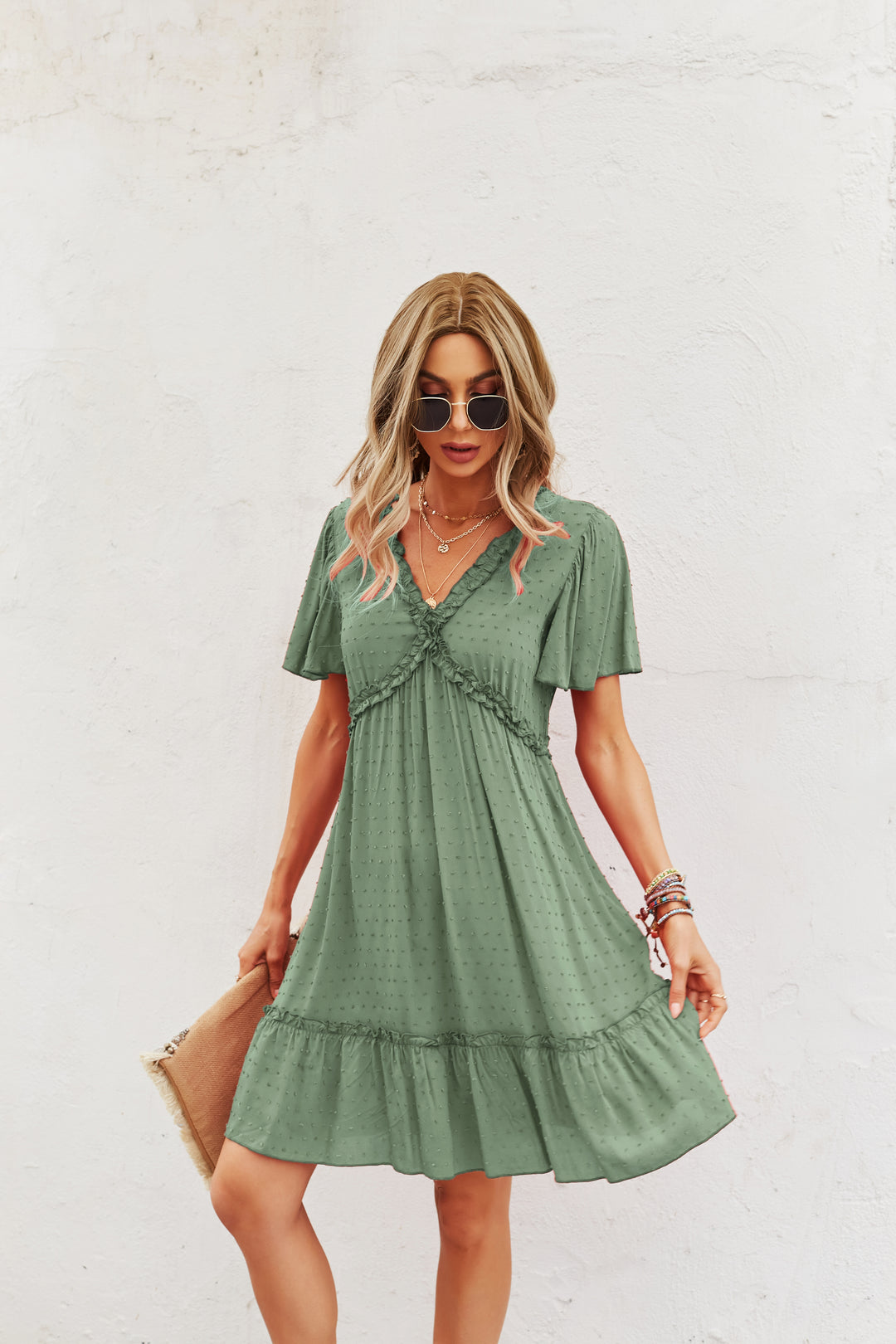 Step into the scene with Sea Green A-Line Mini Dress With Ruffle Detail, a must-have vacation mini dress designed for vacation moments. The a-line silhouette hugs the body for a sleek and defined look. Comfortable yet elevated, it’s ideal for evening events, birthday plans, or your next city outing. Add some glam with accessories or keep it simple,it works either way. A perfect this addition to your occasion-ready wardrobe.