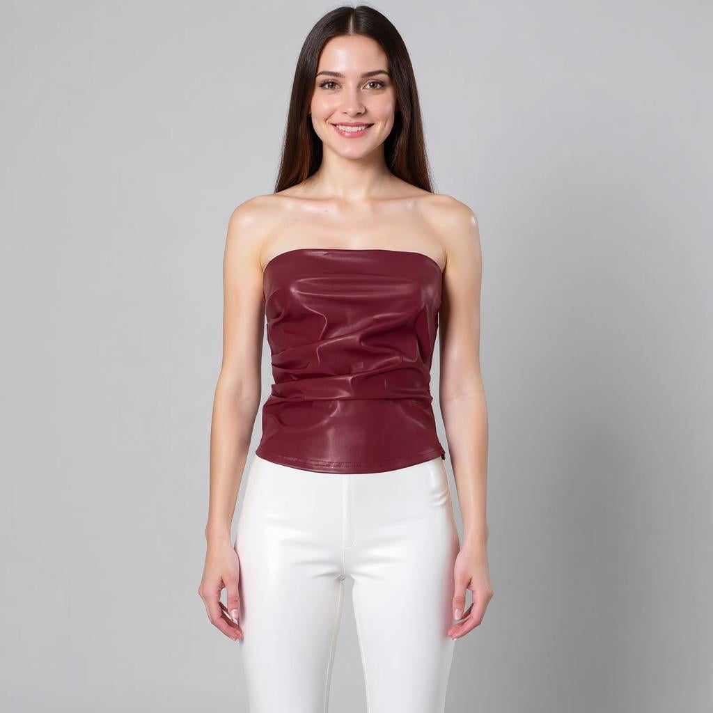Built for party wear days when comfort and style go hand-in-hand. The Burgundy Pu Finish Tube Top has a flattering neckline and just the right fit. It’s an essential that holds up through brunch, strolls, and late-night detours. One top, all plans.