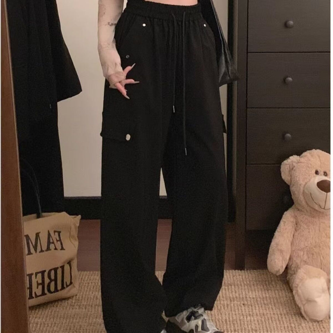 Grey cargo pants with multiple pockets for a practical yet stylish look. Designed for women, these versatile trousers blend comfort and fashion, ideal for casual wear or street style. Perfect for layering with any outfit, these pants offer a trendy Korean-inspired vibe. Whether you're running errands or hanging out, these joggers are the perfect addition to your wardrobe.