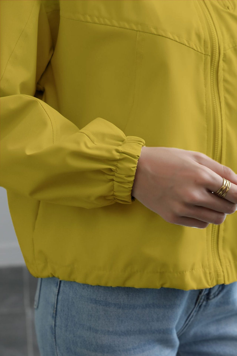 Olive Solid Cuffed Jacket
