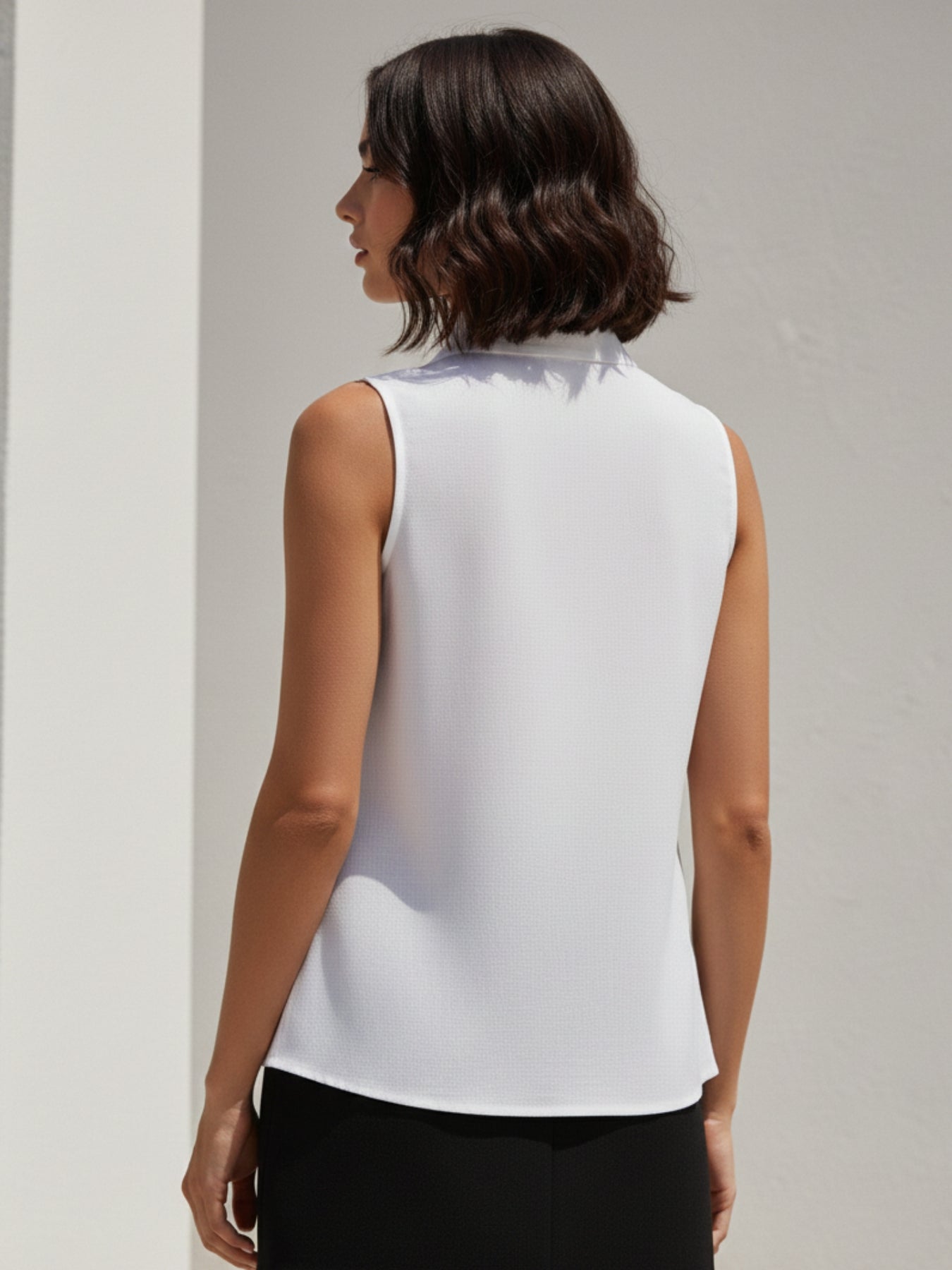Looking for something that just works? The White Cropped Sleeveless Shirt is the one. White shades bring the vibe, and the shape sits in a cropped silhouette for max mix-and-match potential.
